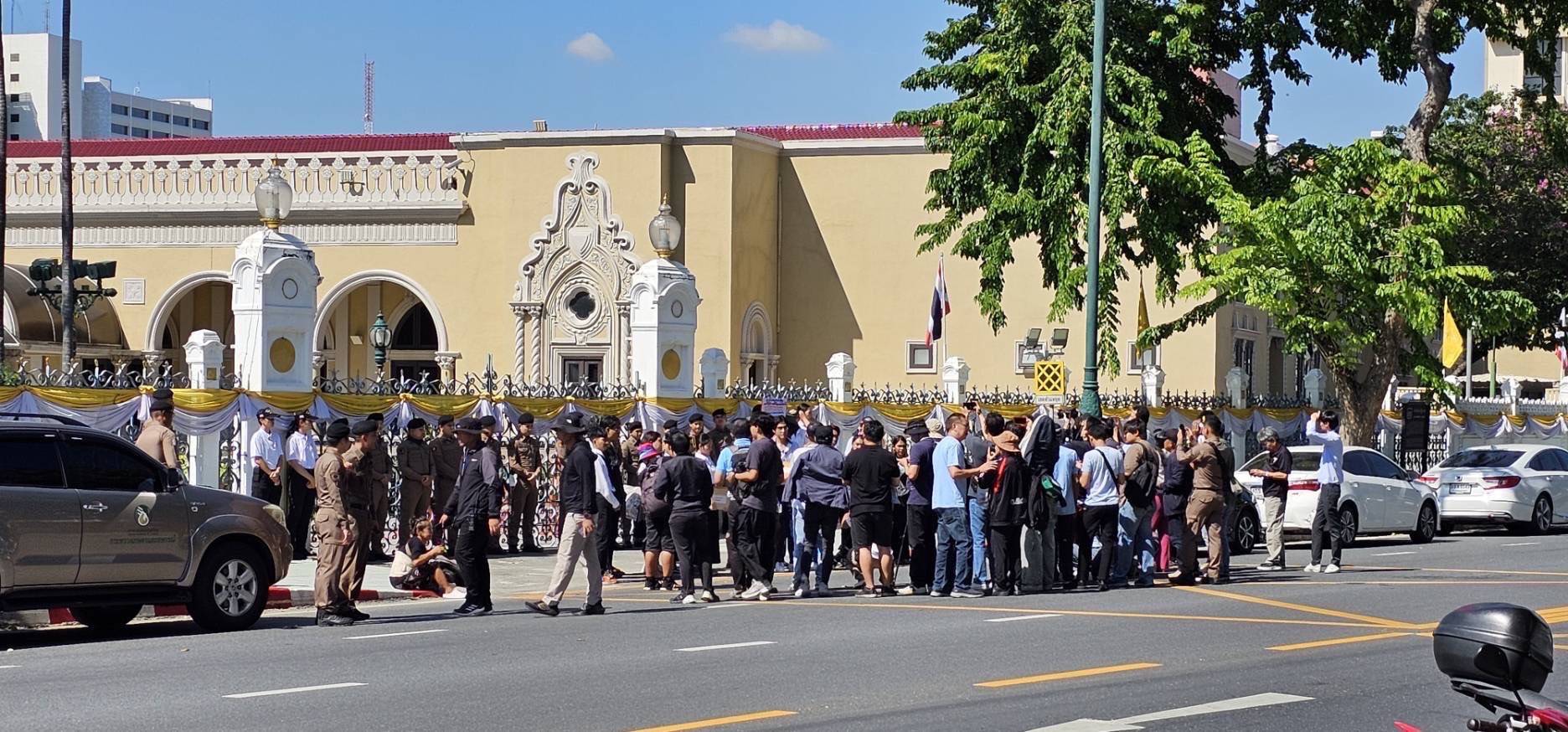 จากนั้นเวลา 10.00 น. แนวร่วมธรรมศาสตร์ ร่วมกับองค์กรนิสิตนักศึกษา 20 องค์กร เดินทางมายื่นข้อเรียกร้องต่อ นายกรัฐมนตรี ที่ประตู 3 ฝั่งสะพานชมัยมรุเชษฐ์ ทำเนียบรัฐบาลเรื่อง(วาระครบ 4 ปี ที่มีการนำกฎหมายมาตรา 112 กลับมาบังคับใช้ และทวงถามแนวทางในการแก้ไขปัญหาคดีการเมืองจากรัฐบาล) นำโดย น.ส.ทยิดา ศิริพงษานุวัฒน์ นางสาคร คำแถลง นายสามารถ ปุยปัญจะ นายกีรติ สโมรินทร์ นาย วรัณชัย โชคชนะ นาย สมยศ พฤกษาเกษมสุข นักเคลื่อนไหวทางการเมืองนาง วรวรรณ แซ่อั้ง นาย อันเจลโลว์ สตายุ สาธร นาย เสกสิทธิ์ แย้มสงวนศักดิ์ และ นาย เอกชัย หงษ์กังวาล นักเคลื่อนไหวทางการเมือง เพื่อยื่นหนังสือถึงนายกฯแพทองธารขอทวงคืนความยุติธรรมและผลักดันการนิรโทษกรรมให้ผู้ถูกดำเนินคดี ม.112