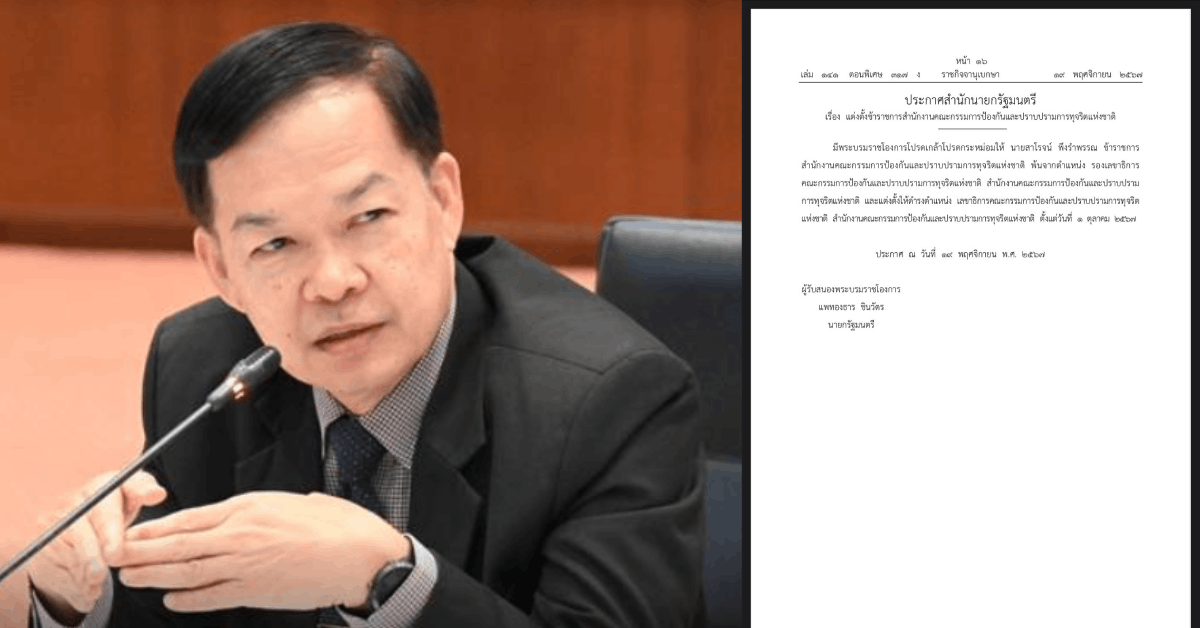 19 พ.ย. – ราชกิจจานุเบกษา เผยแพร่ประกาศสำนักนายกรัฐมนตรี มีพระบรมราชโองการโปรดเกล้าฯ ให้ “สาโรจน์ พึงรำพรรณ” ดำรงตำแหน่งเลขาธิการ ป.ป.ช. คนใหม่