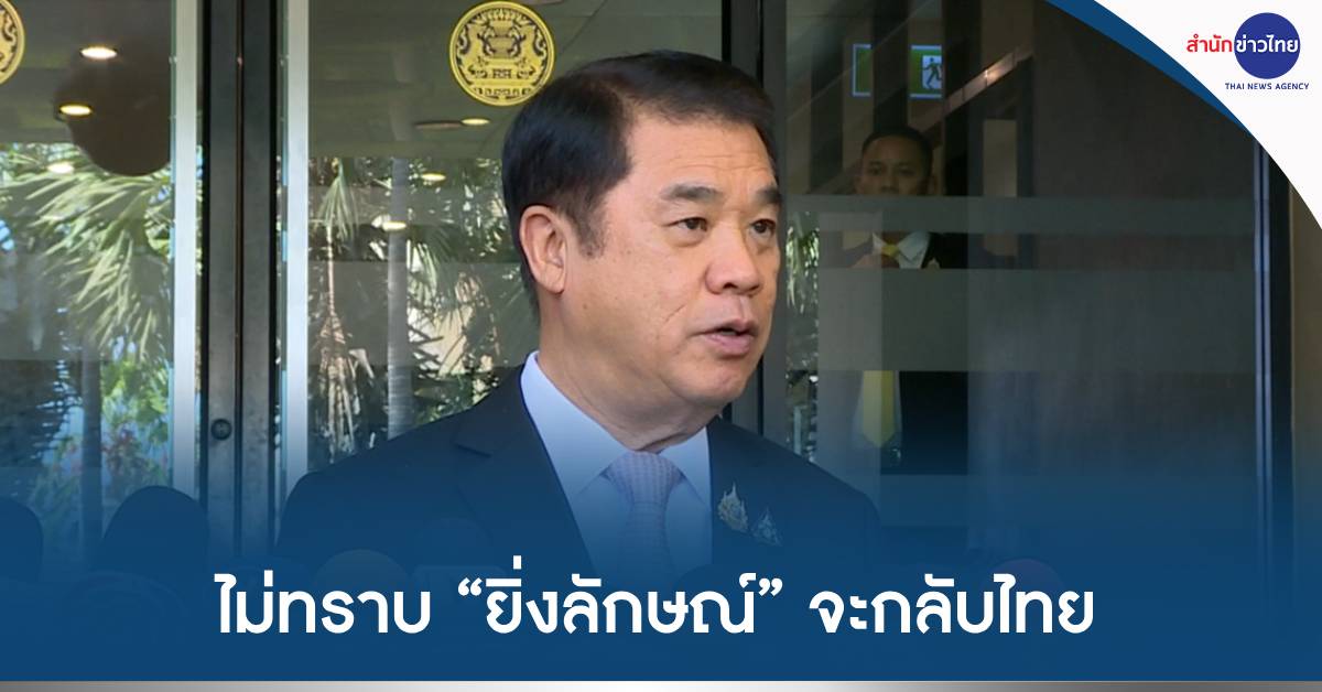 เมื่อถามว่าทราบกระแสข่าว น.ส.ยิ่งลักษณ์ ชินวัตร อดีตนายกรัฐมนตรีจะกลับไทยหรือไม่ นายสุริยะ ระบุว่า “ไม่ได้รับทราบข่าวเลยครับ”.-316.-สำนักข่าวไทย