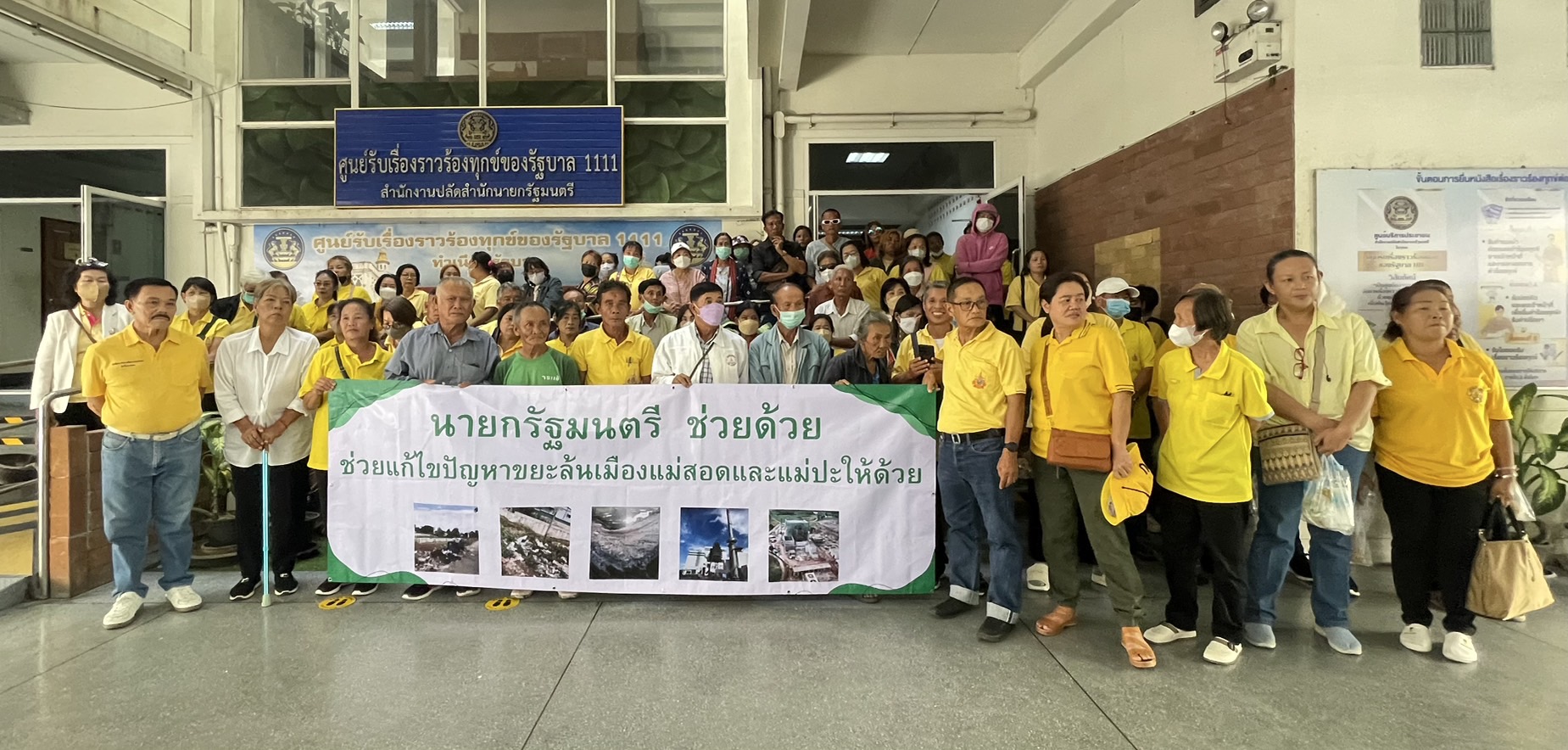 ทำเนียบรัฐบาล 20 พ.ย. – ชาวบ้านแม่สอดบุกร้องนายกฯ แก้ปัญหาขยะล้น ส่งกลิ่นเหม็น น้ำเสีย เร่งหาวิธีการกำจัด