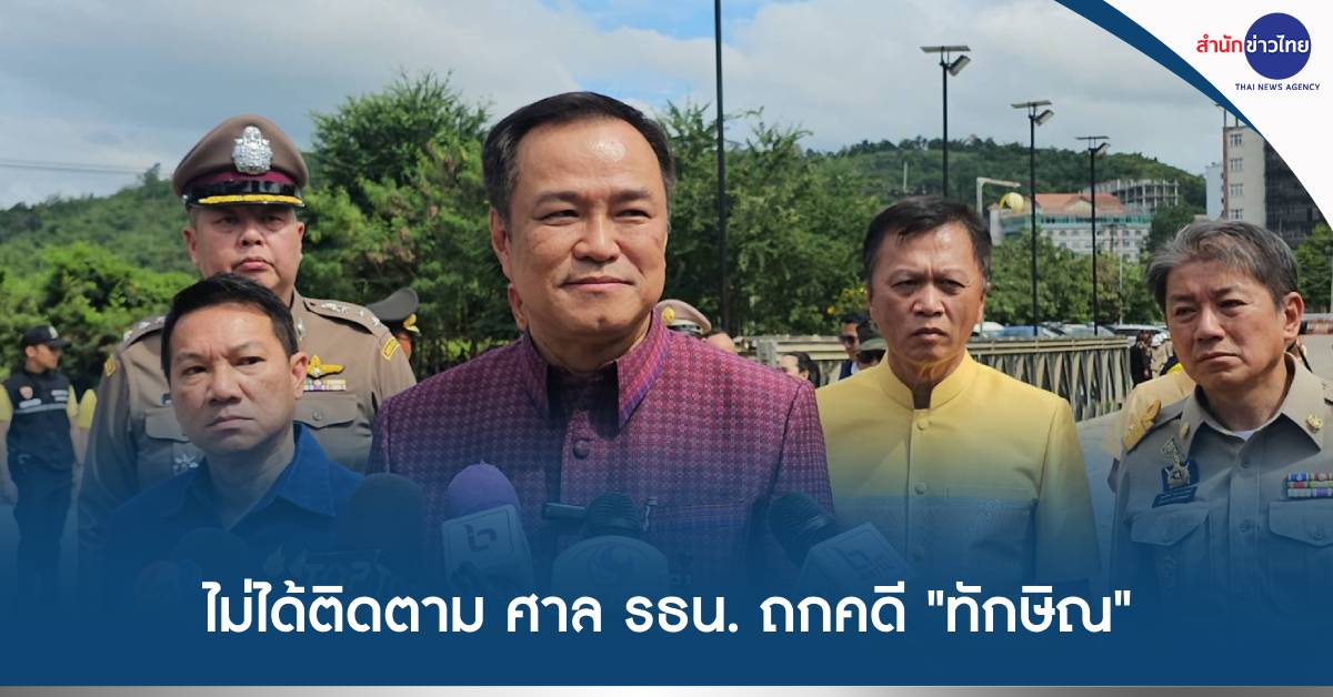 นายอนุชิน ชาญวีรกูล รองนายกรัฐมนตรีและรัฐมนตรีว่าการกระทรวงมหาดไทย กล่าวถึงกรณี ที่ในวันพรุ่งนี้ (22 พ.ย.) ศาลรัฐธรรมนูญจะพิจารณารับคำร้อง คดีล้มล้างการปกครอง ตามมาตรา 49 ของ นายทักษิณ ชินวัตร อดีตนายกรัฐมนตรีหรือไม่ว่า ไม่ได้ติดตามเรื่องนี้ เพราะไม่ได้เกี่ยวข้อง