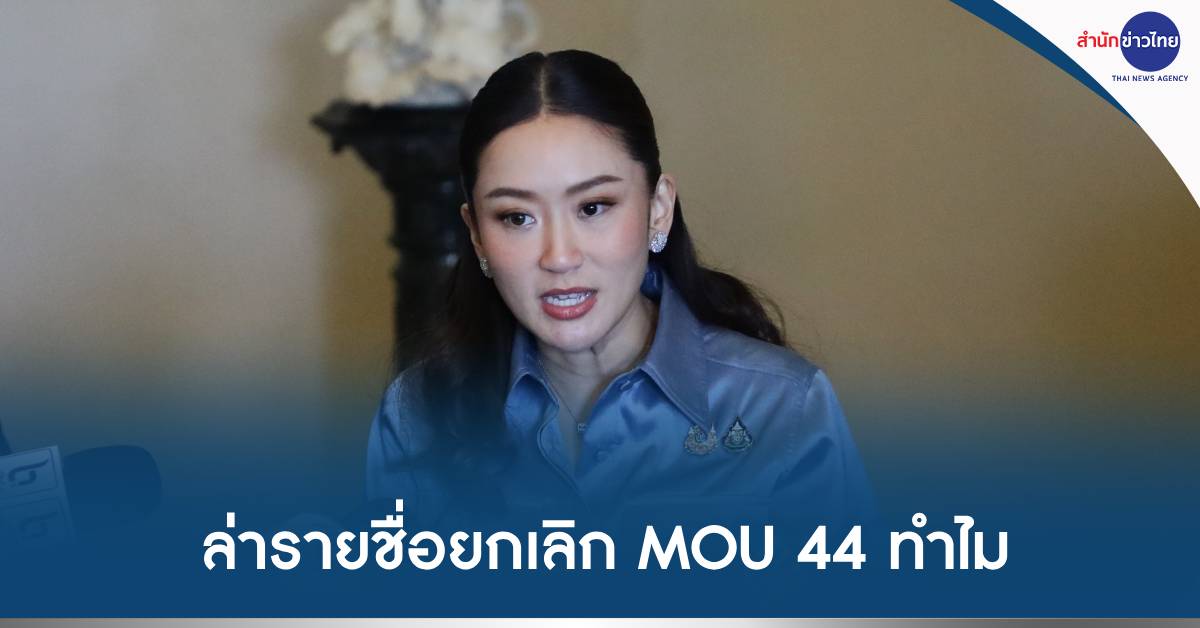 นางสาวแพทองธาร ชินวัตร นายกรัฐมนตรี กล่าวถึงกรณีที่ นพ.วรงค์ เดชกิจวิกรม ประธานพรรคไทยภักดี พร้อมแนวร่วมกลุ่มคนคลั่งชาติ นำรายชื่อกว่า 100,000 รายชื่อ มายื่นถึงนายกรัฐมนตรี เพื่อเรียกร้องให้ยกเลิกเอ็มโอยู 44 เพราะประเทศไทยอาจเสียดินแดน นายกรัฐมนตรี ถามกลับทันทีว่า เสียอะไร เรื่องเส้นที่ขีดไว้ของกัมพูชาและไทย เป็นเรื่องของพื้นที่อ้างสิทธิ์ ไม่ใช่พื้นที่ที่เคาะแล้วว่าแบ่งอย่างไร และไม่เกี่ยวกับเกาะกูด เป็นสิ่งที่เราต้องตั้งคณะกรรมการคุยกัน อย่างเช่นไทยและมาเลเซีย ก็เคยมีเรื่องประมาณนี้เช่นกัน เราไม่ได้แบ่งพื้นที่กัน แต่เราแบ่งผลประโยชน์ร่วมกันในเรื่องของก๊าซธรรมชาติ อย่างของกัมพูชา จึงมีการตั้งคณะกรรมการขึ้นมา เพื่อหาว่าจะทำอย่างไร โดยมีเอ็มโอยูเพื่อนำข้อที่ไม่เห็นด้วยมาพูดคุยกัน เช่น ไม่เห็นด้วยเรื่องเส้นขีดแบ่งว่าอย่างไร สมมุติว่า ถ้าไม่มีใครยอมถอย จะเอาอย่างไร ก็ต้องแบ่งผลประโยชน์กัน คือสิ่งที่คณะกรรมการคุยกันต่อว่าจะเอาแบบไหน ทั้งหมด นี้ คือการยกตัวอย่างให้เห็นภาพว่าเอ็มโอยู 44 มีเพื่ออะไร และถามกลับว่า ที่มาล่ารายชื่อกันนั้น อยากจะยกเลิกเพื่ออะไร ก็เอาเหตุและผลมาคุย