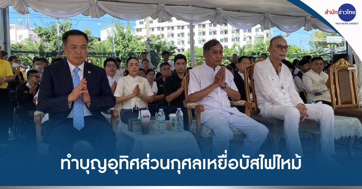 ปทุมธานี 25 พ.ย.-มท.1 ทำบุญอุทิศส่วนกุศลให้แก่ผู้ล่วงลับ 23 ราย รถบัสทัศนศึกษานักเรียนอุทัยธานีไฟไหม้ พร้อมเรียกขวัญกำลังใจ ขณะที่ “ชาดา” เผยเตรียมระดมทุนเยียวยาเพิ่มเติมกลุ่มผู้บาดเจ็บสาหัสอีก 3 คน