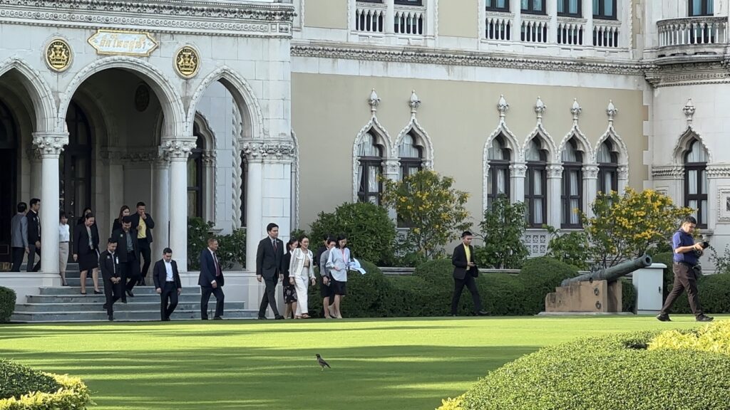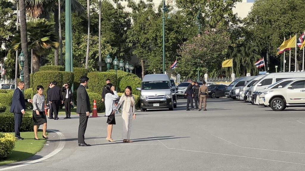 เมื่อเวลา 15.46 น. นางสาวแพทองธาร ชินวัตร นายกรัฐมนตรี พร้อมด้วย นายปิฎก สุขสวัสดิ์ คู่สมรส เดินลงมาบริเวณ สนามหญ้าด้านหน้าตึกไทยคู่ฟ้า ทำเนียบรัฐบาล เพื่อซักซ้อมพิธีสวนสนามต้อนรับ นายลอว์เรนซ์ หว่อง นายกรัฐมนตรีสิงคโปร์ ในโอกาสเดินทางเยือนประเทศไทยอย่างเป็นทางการในฐานะแขกของรัฐบาล ในวันที่ 28 พฤศจิกายน 2567 โดยครั้งนี้ถือเป็นครั้งแรกที่นางสาวแพทองธาร จะให้การต้อนรับผู้นำต่างประเทศที่ทำเนียบรัฐบาล