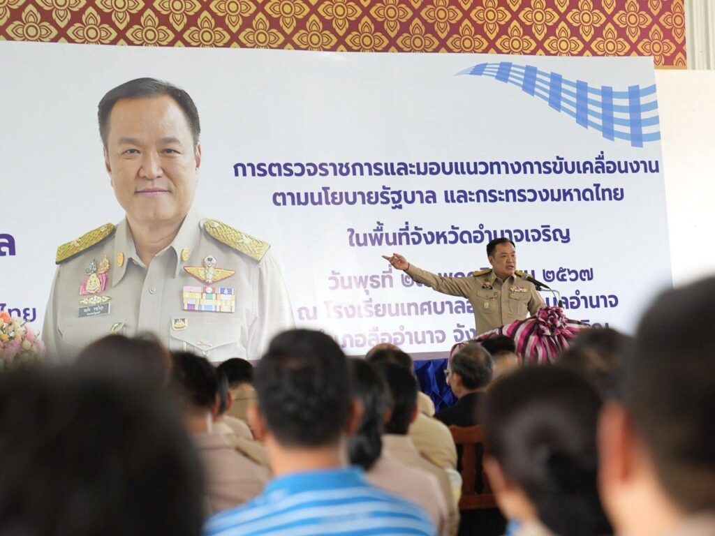 นายอนุทิน ชาญวีรกูล รองนายกรัฐมนตรีและ รมว.มหาดไทย นำคณะผู้บริหารกระทรวงมหาดไทยลงพื้นที่ตรวจราชการและมอบนโยบายการปฏิบัติราชการแก่หัวหน้าส่วนราชการ นายอำเภอ กำนัน ผู้ใหญ่บ้าน ผู้บริหารองค์กรปกครองส่วนท้องถิ่น (อปท.) ณ โรงเรียนเทศบาลอำนาจ อ.ลืออำนาจ จ.อำนาจเจริญ
