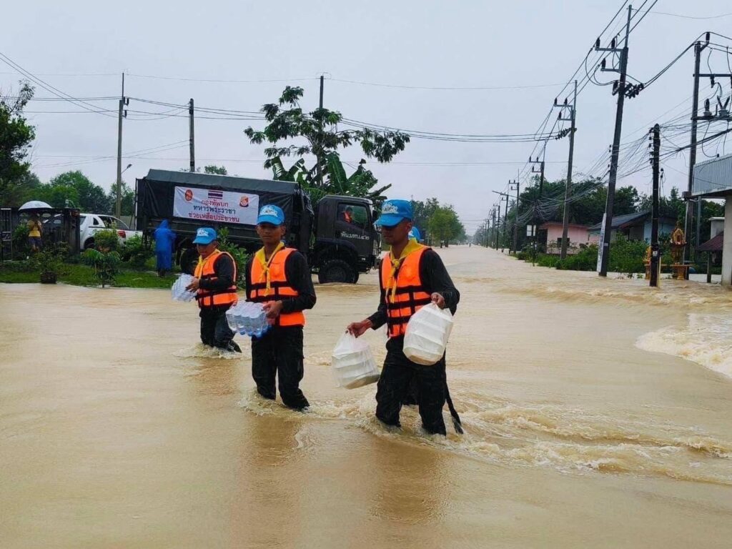 เหล่าทัพได้มีการเตรียมพร้อมเข้าช่วยเหลือในระดับสูงสุด โดยบูรณการร่วมกับ ปภ.จังหวัด และส่วนที่เกี่ยวข้องเข้าช่วยเหลือประชาชนในพื้นที่อย่างเร่งด่วน อาทิ สำนักงานพัฒนาภาค 4 หน่วยบัญชาการทหารพัฒนา กองบัญชาการกองทัพไทย ได้จัดกำลังพล พร้อมเครื่องสูบน้ำ และเรือยาง เรือท้องแบนเข้าช่วยเหลือประชาชนจากสถานการณ์อุทกภัย พร้อมกันนี้ กองทัพบก โดย ศูนย์บรรเทาสาธารณภัย กองทัพภาคที่4/ศูนย์อำนวยการจิตอาสาพระราชทาน ภาค4 ได้จัดกำลังพล เข้าปฏิบัติหน้าที่แล้ว จำนวนกว่า 500 นาย พร้อมยุทโธปกรณ์ และยานพาหนะรถยนต์บรรทุกขนาดใหญ่ จำนวน 12 คัน, รถกะบะ จำนวน 6 คัน เรือท้องแบน 6 ลำ เสื้อชูชีพ 223 ตัว และอุปกรณ์ในการช่วยเหลือประชาชน นอกจากนี้ศูนย์บรรเทาสาธารณภัยกรมการทหารช่าง ได้จัดเรือท้องแบนจำนวน 25 ลำ พร้อมกำลังพลและยุทโธปกรณ์เข้าเสริมการช่วยเหลือ