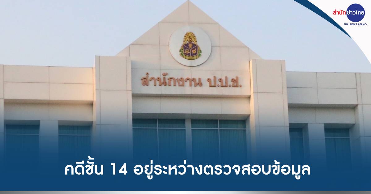 ป.ป.ช. 3 ธ.ค. – ป.ป.ช. แจงคดีชั้น 14 อยู่ระหว่างการตรวจสอบข้อมูลเบื้องต้นยังไม่มีการเสนอเรื่องเข้าสู่การพิจารณา ของคณะกรรมการ ป.ป.ช.