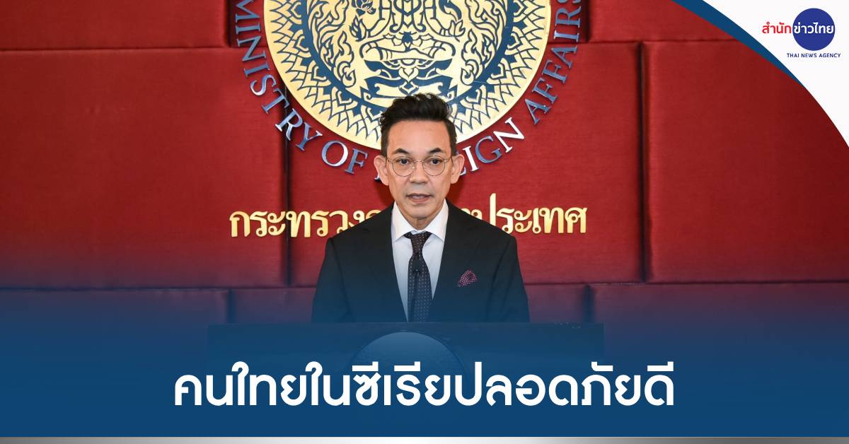 กทม. 9 ธ.ค.-โฆษก ก.ต่างประเทศ เผยคนใทยในซีเรียปลอดภัยดี หลังกลุ่มติดอาวุธฝ่ายต่อต้านบุกยึดเมืองต่างๆ และขอให้คนไทยในซีเรียติดตามข่าวสารจากช่องทางต่างๆ ใกล้ชิด