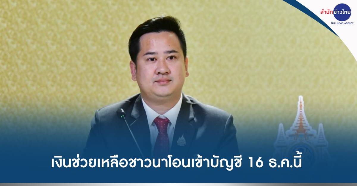 ทำเนียบ 13 ธ.ค.-รัฐบาลย้ำ 16 ธ.ค.นี้ เงินช่วยเหลือชาวนาโอนเข้าบัญชี เตือนเกษตรกรเช็กสถานะ เงินช่วยเหลือชาวนา ไร่ละ 1,000 บาท ผ่าน efarmer.doae.go.th หากข้อมูลมีปัญหารีบติดต่อ ธ.ก.ส. ในพื้นที่