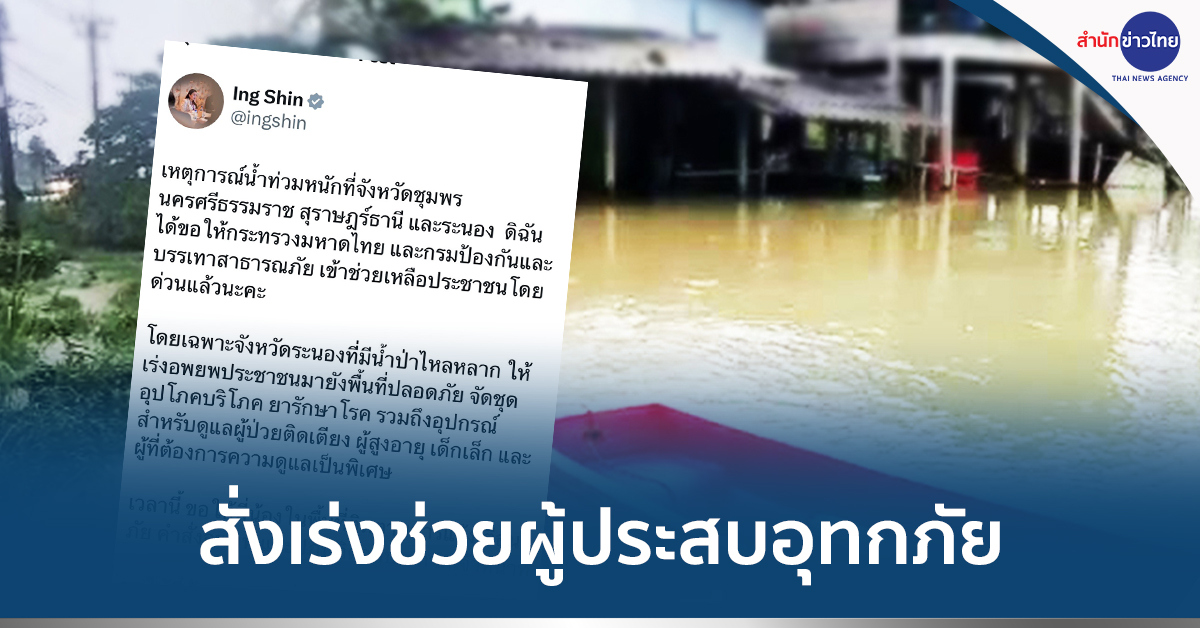 นางสาวแพทองธาร ชินวัตร นายกรัฐมนตรีโพสต์ข้อความผ่านโซเชียลมีเดีย ระบุว่าเหตุการณ์น้ำท่วมหนักที่จังหวัดชุมพร นครศรีธรรมราช สุราษฎร์ธานี และระนอง ดิฉันได้ขอให้กระทรวงมหาดไทย และกรมป้องกันและบรรเทาสาธารณภัย เข้าช่วยเหลือประชาชนโดยด่วนแล้วนะคะ