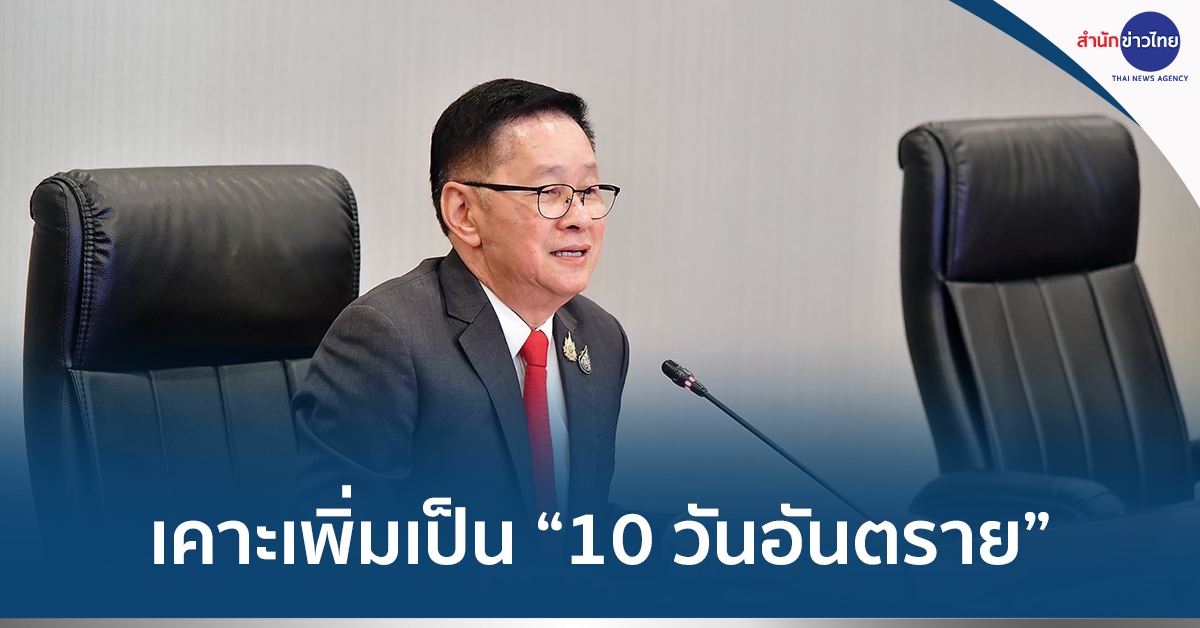 ทำเนียบ 19 ธ.ค.- คกก.นโยบายเครื่องดื่มแอลกอฮอล์ เคาะเพิ่มวันเฝ้าระวังความปลอดภัยทางถนนจาก 7 เป็น 10 วันอันตราย 27 ธ.ค. 67 – 5 ม.ค. 68 กำชับตั้งด่านชุมชนเพิ่ม รณรงค์ดื่มอยู่บ้านลดอุบัติเหตุ