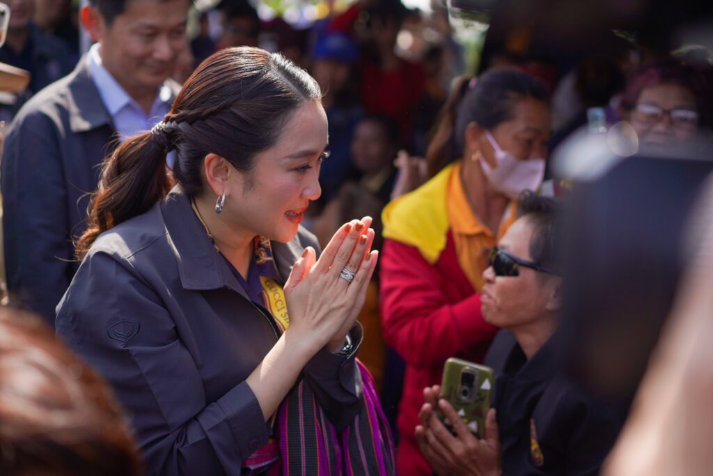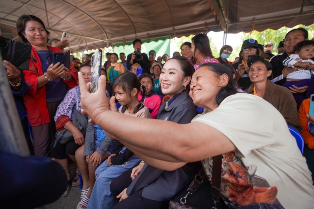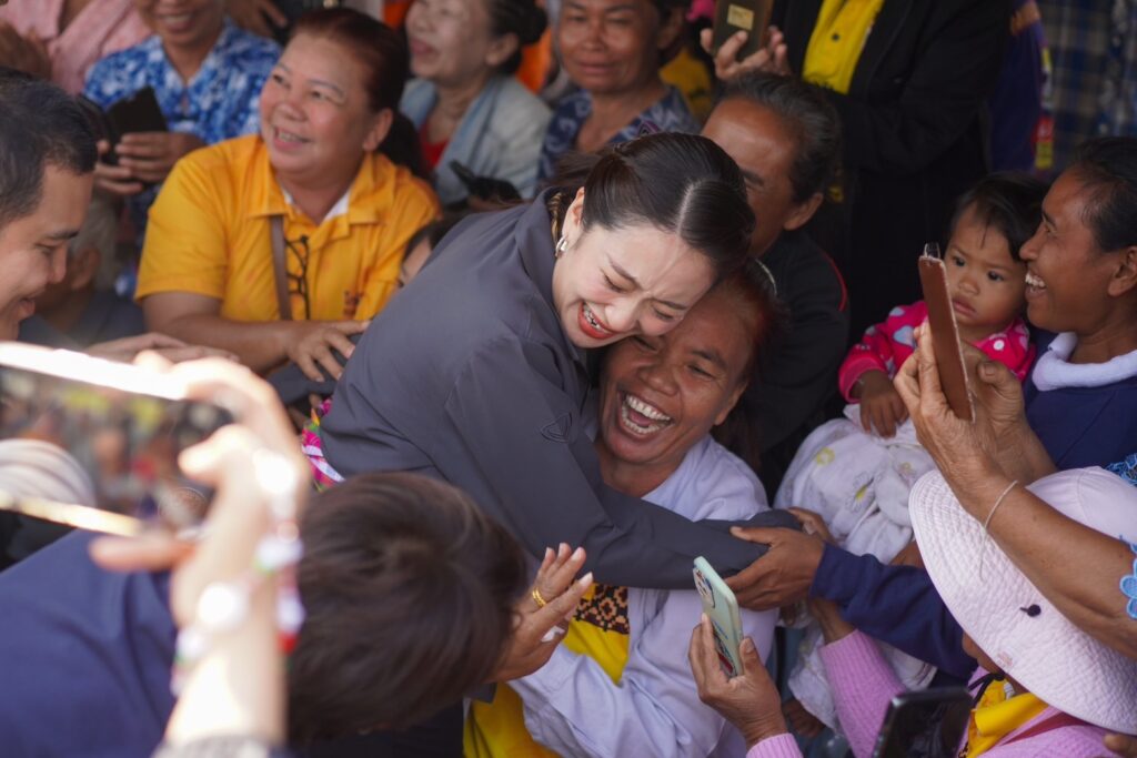 นายกรัฐมนตรี ยังได้เดินพบประชาชน ที่มารอรับ ทำให้ประชาชนตื่นเต้น บางคนได้ดึงตัวนายกฯไปกอดด้วยความดีใจที่นายกฯมาหา พร้อมกับเอ่ยชมว่าตัวจริงสวยมากกว่าในทีวี และขอผูกผ้าขาวม้า จนนายกฯหยอกกลับว่า ”ผูกได้ ตอนนี้ไม่ท้องแล้ว และหยอดมุข “บางคนรัดแน่น ไม่ท้องแล้วแต่หายใจไม่ออก” พร้อมกับขอเซลฟี่และคล้องพวงมาลัยดาวเรือง ตะโกนให้กำลังใจนายกฯสู้ๆ
