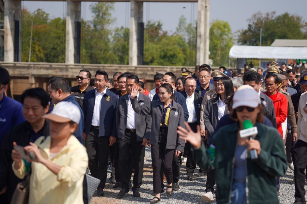 จากนั้นเวลา 11.25 น.ส.แพทองธาร เดินทางถึงประตูระบายน้ำห้วยน้ำเค็ม(DM) กรมชลประทาน กระทรวงเกษตรและสหกรณ์ ต.ยางท่าแจ้ง อ.โกสุมพิสัย ตรวจติดตามการแก้ไขปัญหาอุทกภัยลุ่มน้ำชี และการบริหารจัดการน้ำในพื้นที่