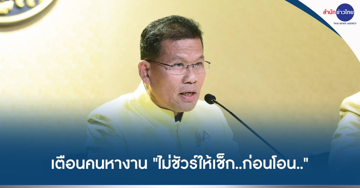 ทำเนียบ 6 ม.ค.-รัฐบาล เตือนคนหางาน “ไม่ชัวร์ให้เช็ก..ก่อนโอน..” ด้านกรมการจัดหางาน เร่งช่วย 250 แรงงานไทยถูกหลอกไปออสเตรเลีย ขณะที่อิสราเอล ประกาศต้องการชายไทยไปทำงานผ่านกรมแรงงาน