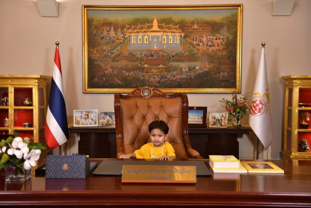 สำหรับบรรยากาศที่ทำเนียบรัฐบาลเป็นไปอย่างคึกคัก ไฮไลท์สำคัญวันนี้ คือการเข้าเยี่ยมชมตึกไทยคู่ฟ้า และให้เด็ก ๆ ได้นั่งเก้าอี้ทำงานของนายกรัฐมนตรี โดยเด็กที่เข้าทำเนียบรัฐบาลคนแรก และเป็นคนที่ได้นั่งเก้าอี้นายกรัฐมนตรีคนแรก คือ เด็กชาย พศุจน์ เปาอินทร์ หรือ น้องพอร์ช วัย 3 ขวบ เดินทางมากับครอบครัว จากจังหวัดกาญจนบุรี ตั้งแต่เวลาเที่ยงคืน ก่อนที่จะมาถึงประตูทำเนียบในเวลา 03.30 น.
