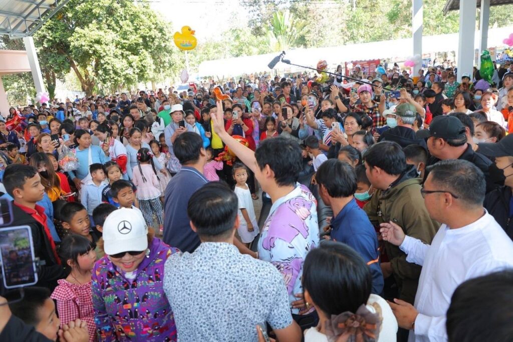 ลำพูน 11 ม.ค.- “พิธา” ใส่เสื้อ “หมูเด้ง” โชว์ตัววันเด็กลำพูน คนขอถ่ายรูปพรึ่บ ขณะตัวแทนชาวบ้าน มอบเสื้อทอมือประจำถิ่น
