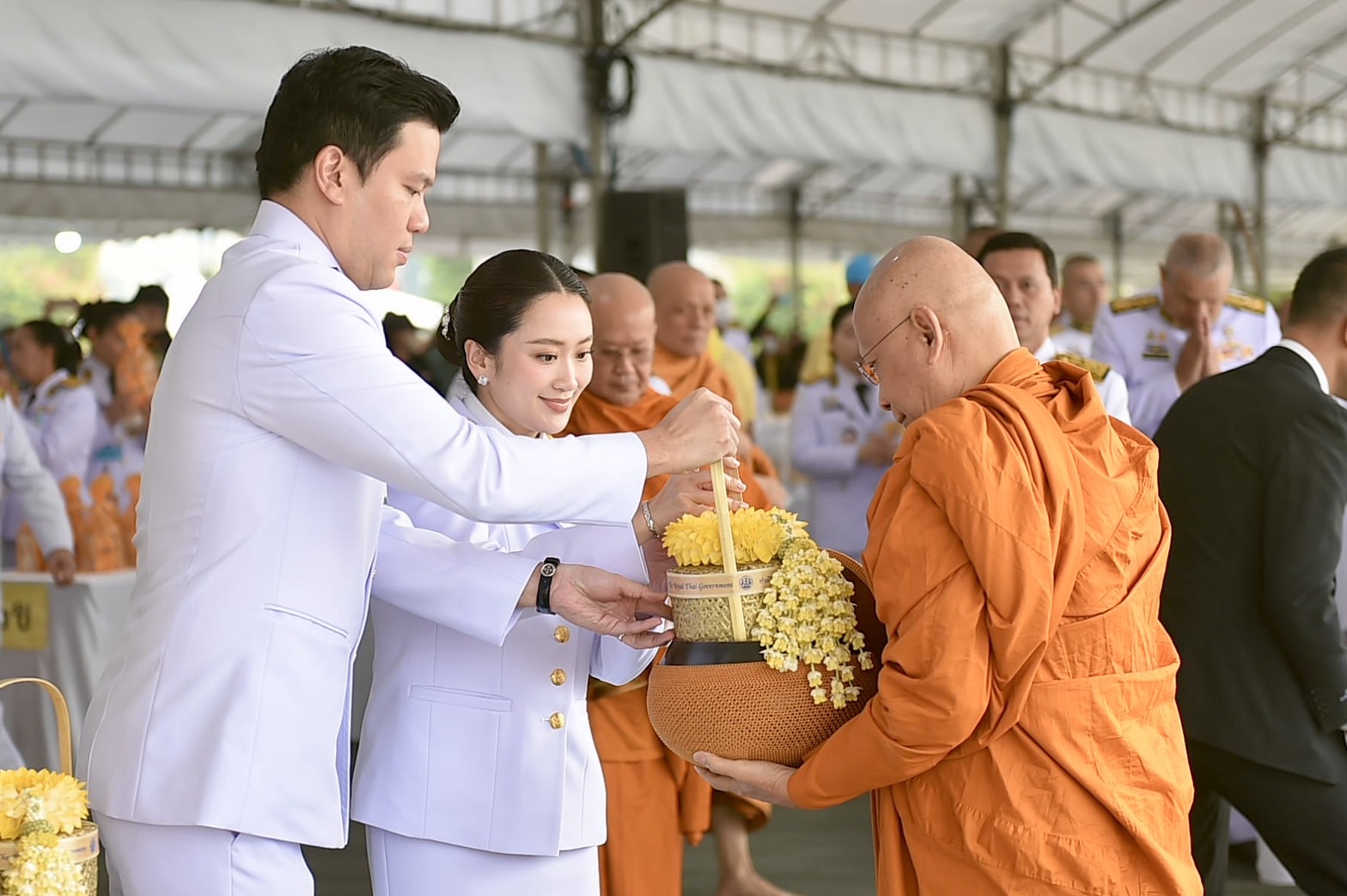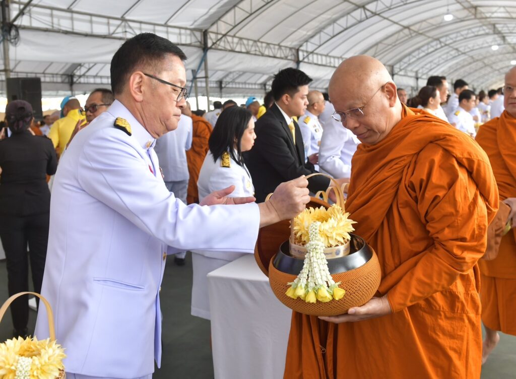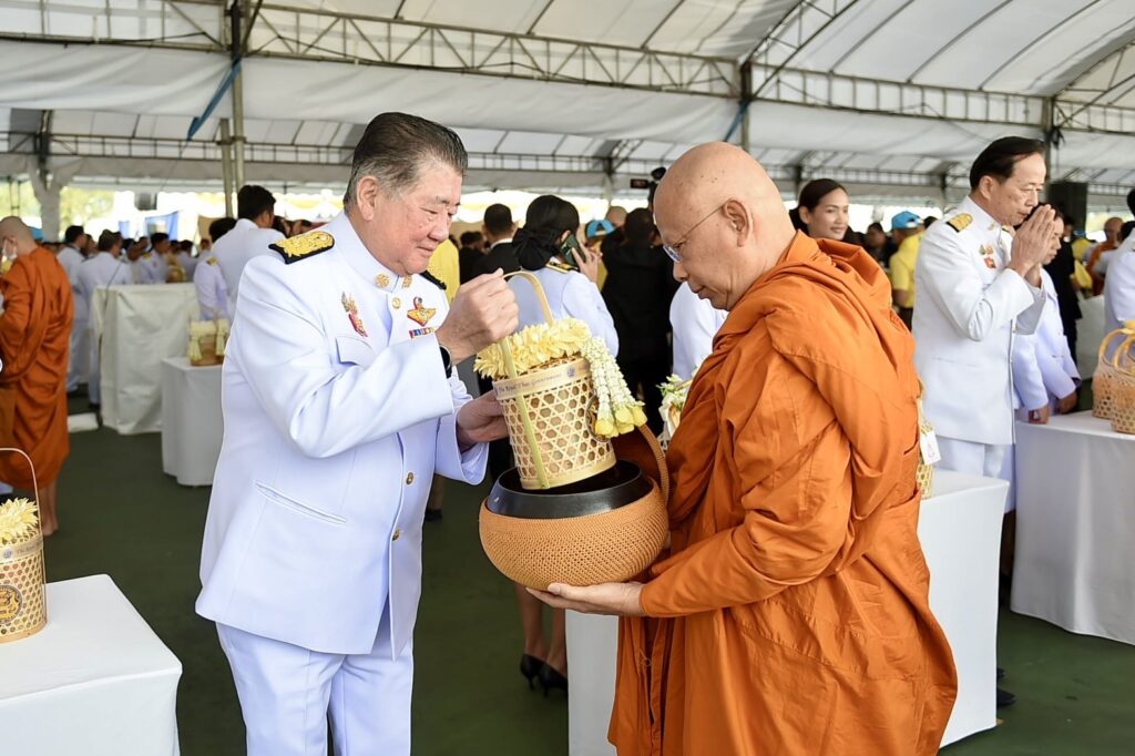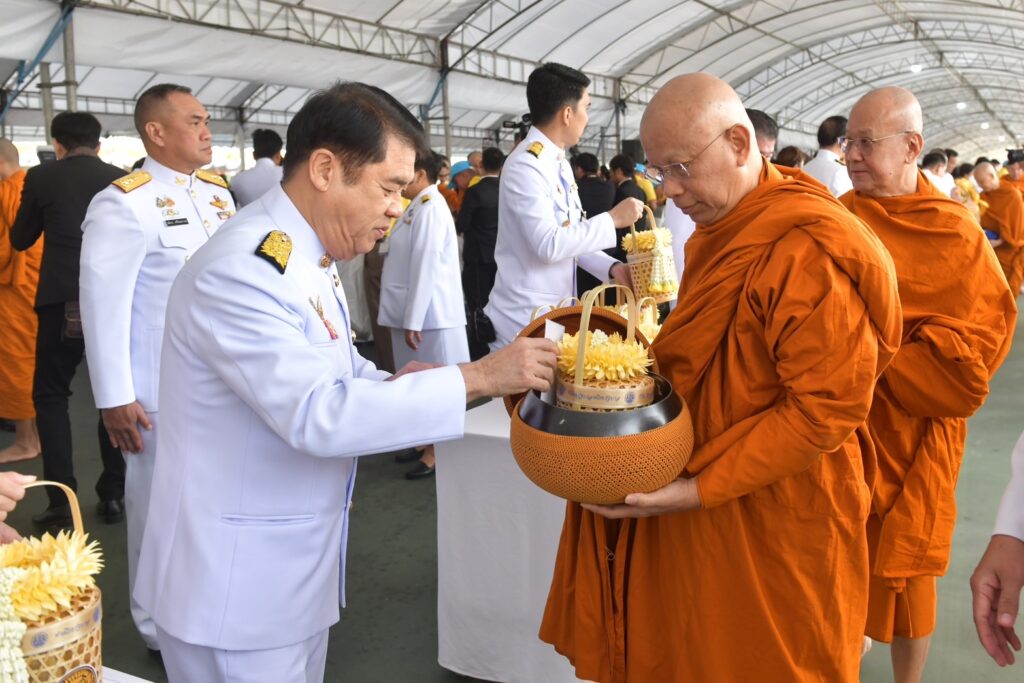 ภายหลังเสร็จสิ้นพิธีเจริญพระพุทธมนต์ นายกรัฐมนตรี และคู่สมรสได้ตักบาตร พระสงฆ์จำนวน 173 รูป เพื่อถวายพระราชกุศล