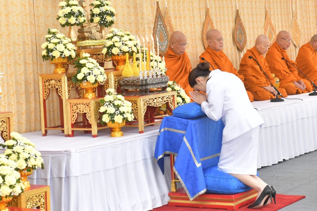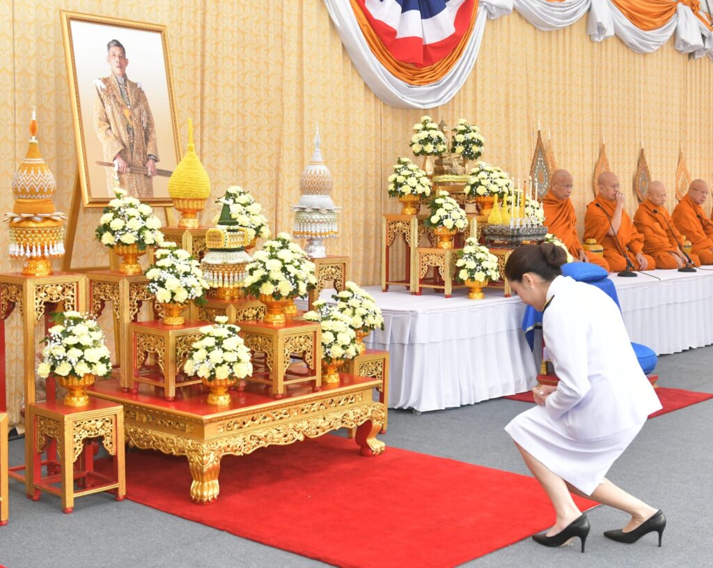 โอกาสนี้ นายกรัฐมนตรีจุดธูปเทียนบูชาพระรัตนตรัย จุดธูปเทียนเครื่องทองน้อยหน้าพระบรมสาทิสลักษณ์พระบาทสมเด็จพระพุทธยอดฟ้าจุฬาโลกมหาราช จากนั้น ถวายความเคารพ ถวายราชสักการะพระบรมฉายาลักษณ์พระบาทสมเด็จพระเจ้าอยู่หัว เจ้าหน้าที่อาราธนาศีล พระสงฆ์ให้ศีลจบ และสวดพระพุทธมนต์ ต่อจากนั้น นายกรัฐมนตรีและคู่สมรส คณะองคมนตรีและคู่สมรส ประธานศาลฎีกา ประธานวุฒิสภา ผู้แทนประธานรัฐสภา ประธานศาลปกครองสูงสุด ประธานองค์กรตามรัฐธรรมนูญ รองนายกรัฐมนตรีและคู่สมรส และหน่วยราชการในพระองค์ถวายเครื่องไทยธรรมและผ้าไตร แด่พระสงฆ์จำนวน 10 รูป พระสงฆ์สดับปกรณ์ อนุโมทนาถวายอดิเรก เสร็จแล้ว นายกรัฐมนตรีกรวดน้ำรับพร กราบลาพระรัตนตรัย ถวายความเคารพพระบรมสาทิสลักษณ์พระบาทสมเด็จพระพุทธยอดฟ้าจุฬาโลกมหาราช และถวายความเคารพพระบรมฉายาลักษณ์พระบาทสมเด็จพระเจ้าอยู่หัว