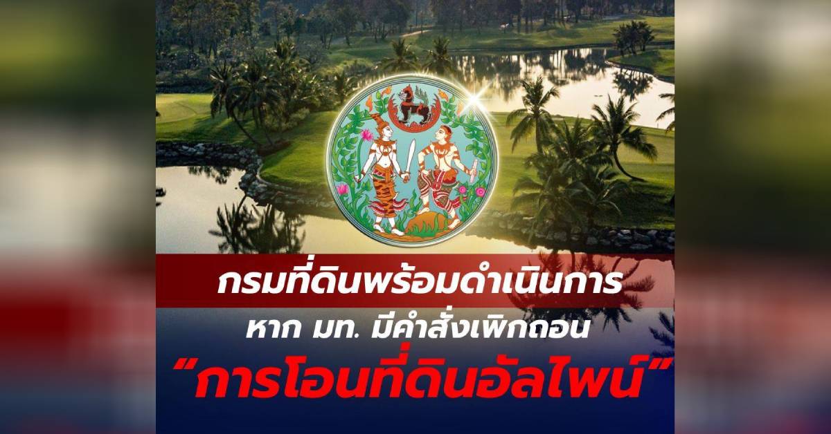กทม. 16 ม.ค.-กรมที่ดิน พร้อมดำเนินการหากมหาดไทย มีคำสั่งเพิกถอนการโอนที่ดินอัลไพน์