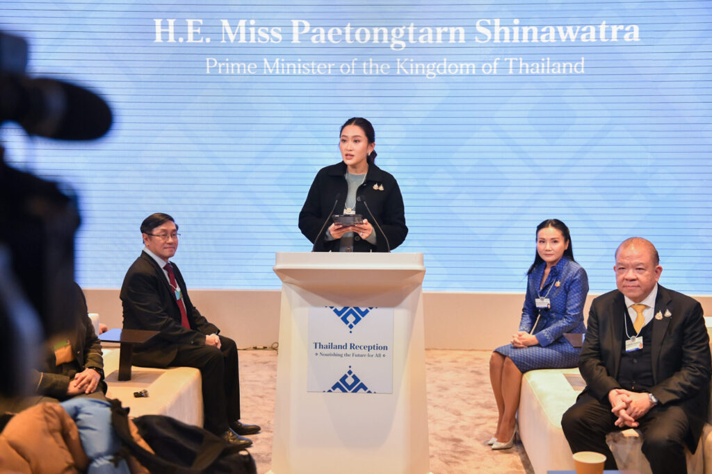 เมื่อเวลา 12.00 น. ตามเวลาท้องถิ่นเมืองดาวอส ที่ Plenary Hall Lobby ศูนย์ประชุม Congress Center เมืองดาวอส สมาพันธรัฐสวิส นางสาวแพทองธาร ชินวัตร นายกรัฐมนตรี ขึ้นกล่าวเปิดงาน Thailand Reception ในห้วงของการประชุม World Economic Forum ประจำปี ค.ศ. 2025 (WEF Annual Meeting 2025) นายจิรายุ ห่วงทรัพย์ โฆษกประจำสำนักนายกรัฐมนตรี สรุปสาระสำคัญดังนี้