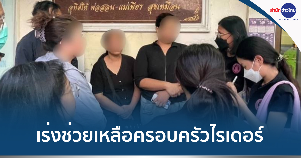 กรุงเทพฯ 22 ม.ค. – “วราวุธ” กำชับทีม ศรส. เยี่ยมให้กำลังใจ เร่งช่วยเหลือเยียวยาครอบครัวไรเดอร์ถูกเก๋งไล่ชนเสียชีวิต พบเป็นเสาหลักครอบครัว ลูก 4 คน-พ่อพิการ
