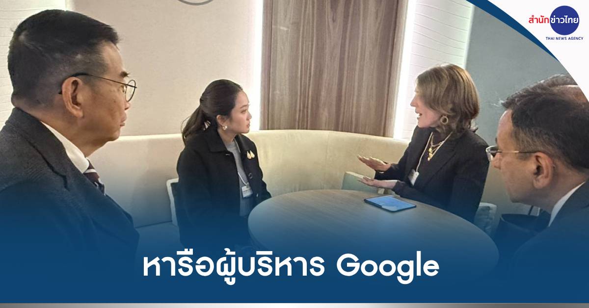 สมาพันธรัฐสวิส 23 ม.ค.-“แพทองธาร” นายกฯ หารือประธาน Google ชวนลงทุนเพิ่มด้านดิจิทัลและผลิตภัณฑ์อื่นๆ ด้าน Google ขอบคุณรัฐบาลไทย สนับสนุนโครงการ Data Center คืบหน้าสร้างโรงงานที่จังหวัดชลบุรี คาดอีก 2 ปี เปิดให้บริการ