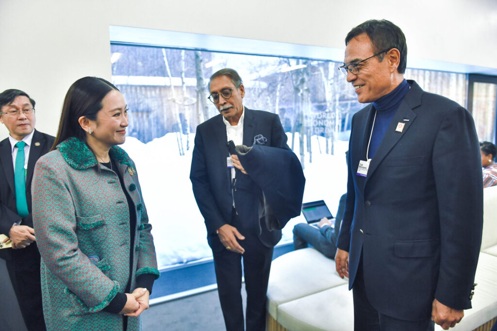 วันนี้ (23 มกราคม 2568) เวลา 11.30 น. ตามเวลาท้องถิ่นเมืองดาวอส สวิตเซอร์แลนด์ ตรงกับเวลาในประเทศไทยประมาณ 17:30น นางสาวแพทองธาร ชินวัตร นายกรัฐมนตรี พบหารือกับนาย ทาเคชิ นีนามิ (Mr.Takeshi Niinami) ประธานกรรมการบริหาร (CEO) บริษัท SUNTORY Holding Co,. Ltd.