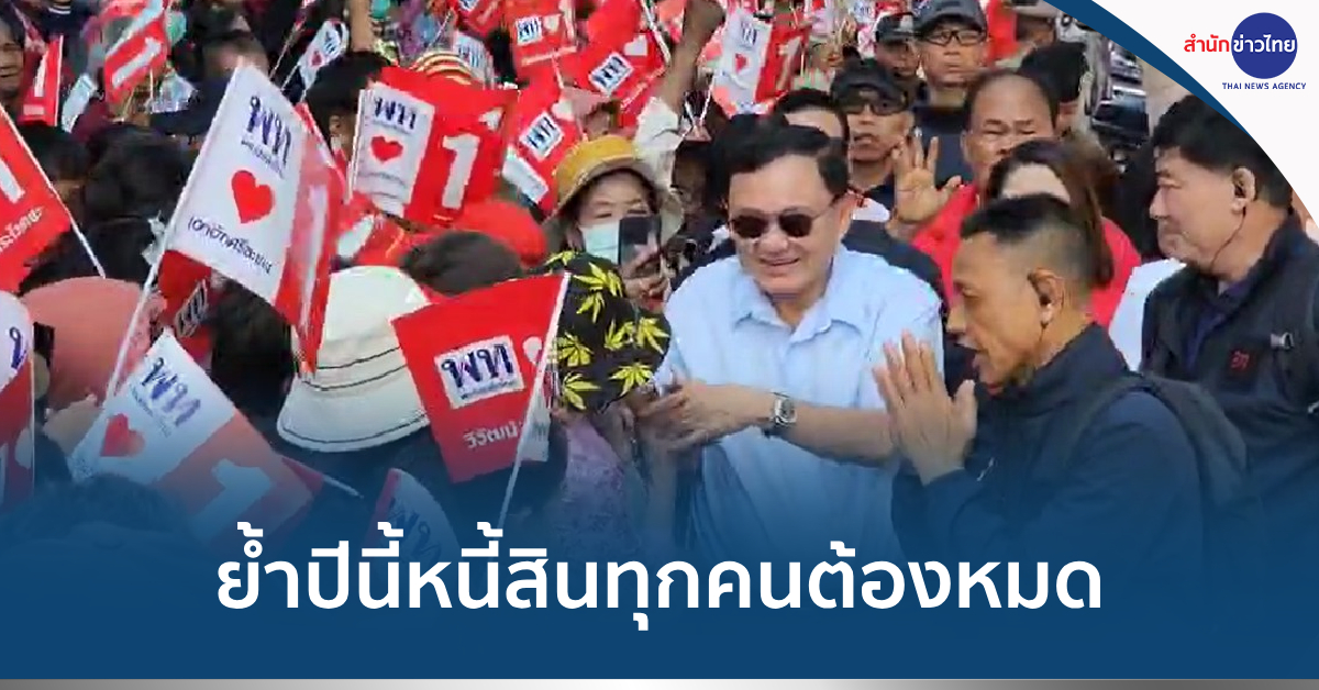 ศรีสะเกษ 25 ม.ค. – “ทักษิณ” ลงพื้นที่หาเสียงช่วยนายก อบจ.ศรีสะเกษ วันที่ 2 ย้ำปีนี้หนี้สินทุกคนต้องหมด ปี 70 หากพรรคเพื่อไทยได้กลับมาเป็นรัฐบาล รับรองประเทศจะรุ่งเรื่องเหมือนตอนที่ตนเป็นนายกฯ
