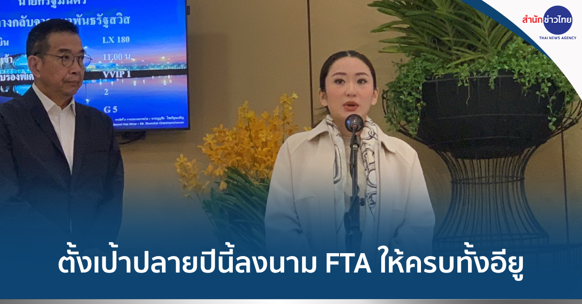 สุวรรณภูมิ 25 ม.ค. – นายกฯ ย้ำตั้งเป้าปลายปีนี้ลงนาม FTA ให้ครบทั้ง EU หวังเปิดเส้นทางการค้าไทยสู่สหภาพยุโรป เผยมีต่างชาติสนใจลงทุนหลายราย บอก “ดูไบพอร์ต เวิลด์” คือเอกชนรายหลักที่คุยโครงการแลนด์บริดจ์ มองมีโอกาสเป็นไปได้สูง