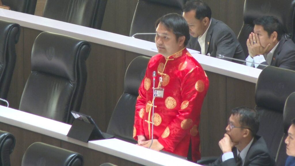 รัฐสภา 29 ม.ค.-สภาคึกคัก สส.แต่งชุดแดง ธีมตรุษจีน ประชุมสภา “บูม ปารเมศ” สส.ปชน. เจ้าถิ่นเยาวราช ใส่ชุดแดงสดพร้อมเพื่อนร่วมพรรค ขณะรัฐบาลไม่น้อยหน้า “ดร.หญิง” สส.เพื่อไทย นำทีมแต่งตามธีมตรุษจีน