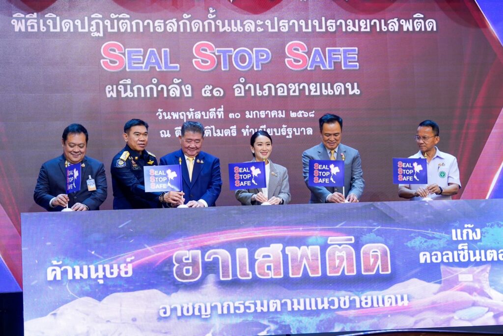นางสาวแพทองธาร ชินวัตร นายกรัฐมนตรี เป็นประธาน ในพิธีเปิดปฏิบัติการสกัดกั้น และปราบปรามยาเสพติด “SEAL STOP SAFE” ผนึกกำลัง 51 อำเภอชายแดน พร้อมด้วย นายภูมิธรรม เวชยชัย รองนายกรัฐมนตรีและรัฐมนตรีว่าการกระทรวงกลาโหม นายอนุทิน ชาญวีรกุล รองนายกรัฐมนตรีและรัฐมนตรีว่าการกระทรวงมหาดไทย พ.ต.อ.ทวี สอดส่อง รัฐมนตรีว่าการกระทรวงยุติธรรม พล.อ.พนา แคล้วปลอดทุกข์ ผู้บัญชาการทหารบกและรองผู้อำนวยการรักษาความมั่นคงภายในราชอาณาจักร พล.ต.อ.กิตติ์รัฐ พันธุ์เพ็ชร์ ผู้บัญชาการตำรวจแห่งชาติ นายอรรษิษฐ์ สัมพันธรัตน์ ปลัดกระทรวงมหาดไทย และ พล.ต.ท.ภาณุรัตน์ หลักบุญ เลขาธิการ ป.ป.ส. และผู้แทนหน่วยงานที่เกี่ยวข้องเข้าร่วม ณ ตึกสันติไมตรี ทำเนียบรัฐบาล