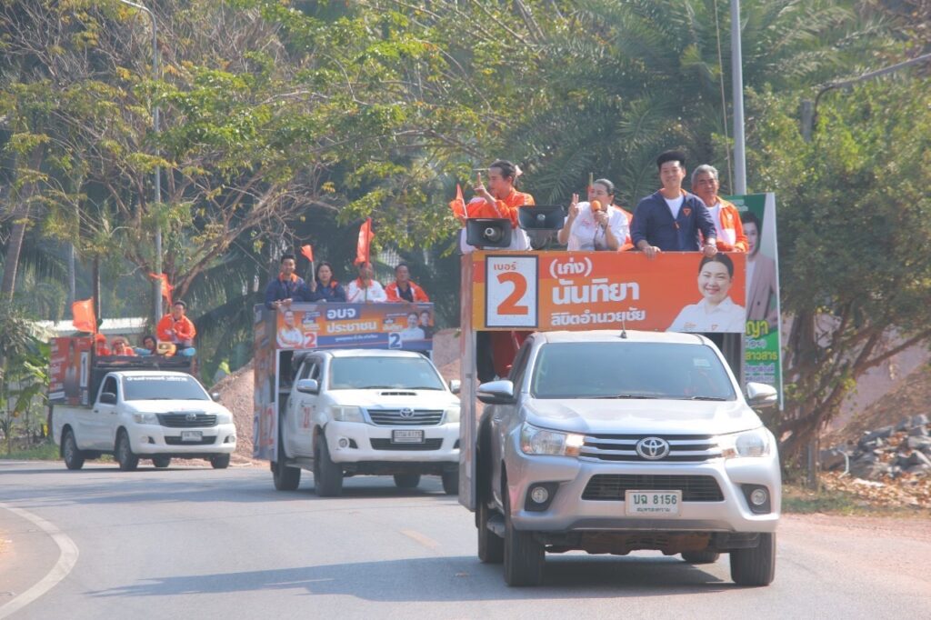 จากนั้นณัฐพงษ์และนันทิยาขึ้นรถแห่หาเสียงรอบพื้นที่ตำบลบางพรม ตำบลบางคนที และตำบลบางนกแขวก ขอคะแนนเสียงชาวแม่กลอง ก่อนเดินทางไปยังตลาดอัมพวา โดยระหว่างขึ้นรถแห่หาเสียง ณัฐพงษ์ได้ปราศรัยเชิญชวนประชาชนไปใช้สิทธิ์เลือกตั้ง อบจ. ขอชัยชนะให้ เก่ง นันทิยา ในวันที่ 1 กุมภาพันธ์นี้ มั่นใจนันทิยาจะไม่ทำให้ชาวแม่กลองผิดหวัง เนื่องจากประสบการณ์การทำงาน ความคุ้นเคยกับพื้นที่ รู้ลึก รู้จริงถึงปัญหา โดยระหว่างเส้นทางปราศรัย มีพี่น้องประชาชนออกมาทักทายและส่งเสียงให้กำลัง