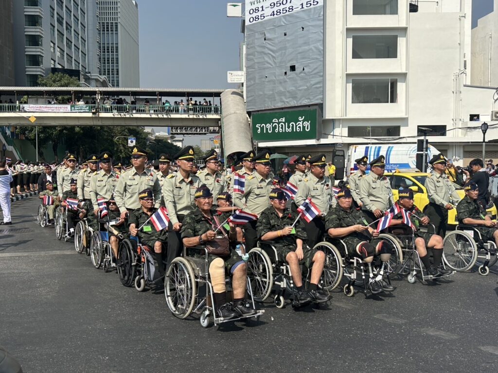 พล.อ.เดชนิธิศ เหลืองงามขำ ผู้อำนวยการองค์การสงเคราะห์ทหารผ่านศึก (ผอ.อผศ.) เป็นประธานนำเดินขบวนพาเหรดของทหารผ่านศึกทุกกรณีสงคราม พร้อมด้วย คณะผู้บริหารระดับสูงของอผศ. สำหรับทหารผ่านศึกที่เข้าร่วมในพิธีเดินขบวนพาเหรด ประกอบด้วย ขบวนทหารผ่านศึกนั่งวีลแชร์,ขบวนทหารผ่านศึกนอกประจำการ บัตรชั้นที่ 1 ที่พิการทุพพลภาพจากการสู้รบ,