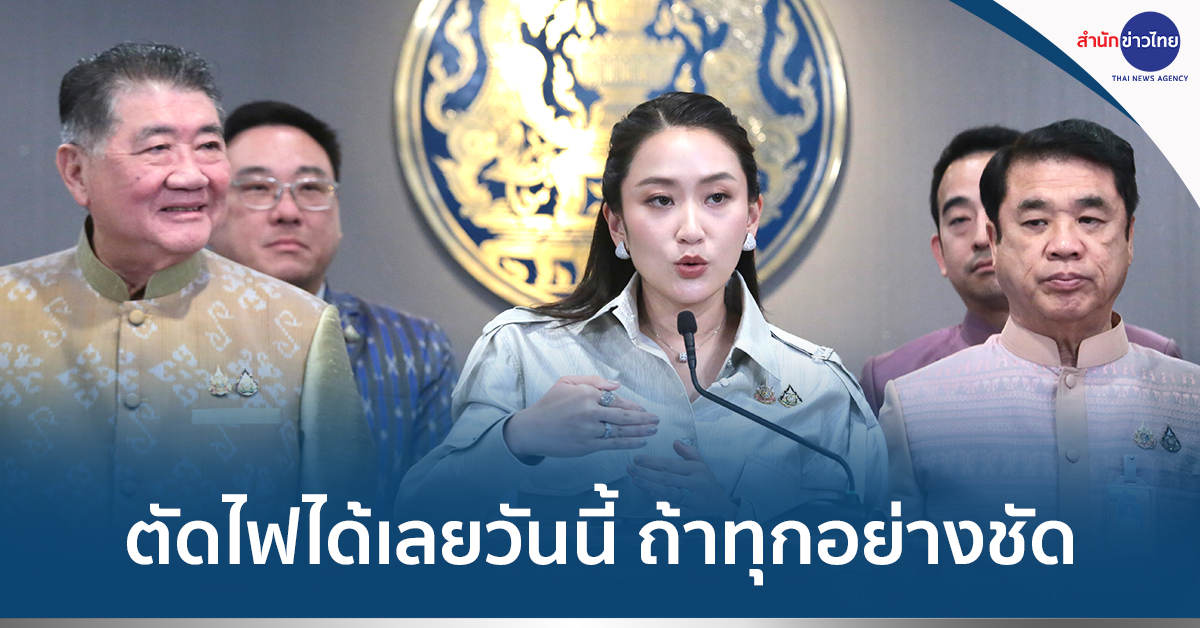 เมื่อถามว่าได้ขีดเส้นหรือไม่ว่าจะตัดไฟวันไหน นายภูมิธรรม กล่าวว่า “ให้ลงไปวันนี้” ซึ่งเป็นจังหวะเดียวกับที่น.ส.แพทองธาร ใช้นิ้วชี้ลงไปที่โพเดียมแถลงข่าวและพูดว่า “วันนี้ได้เลยคะ ถ้าคุยแล้วมันชัดเจนแล้วก็วันนี้เลยคะ”.-315 -สำนักข่าวไทย
