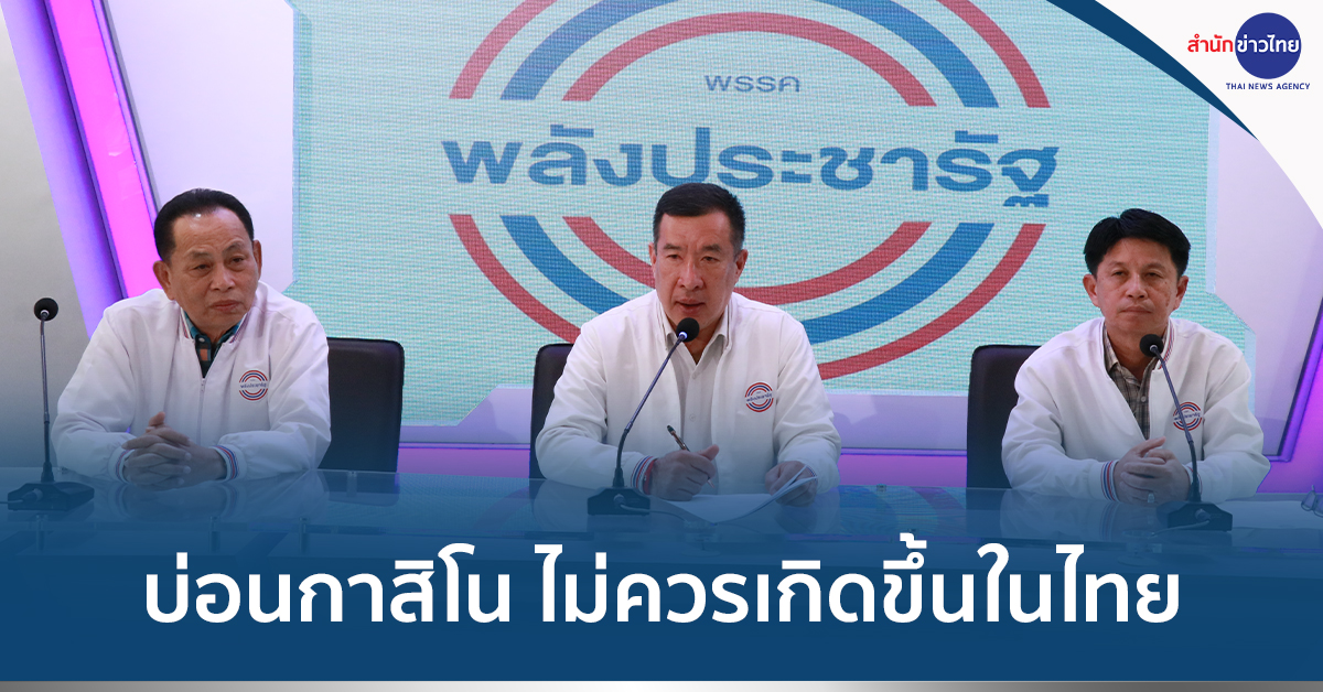 พปชร. 4 ก.พ.- พปชร. เตรียม นำประเด็นเอ็นเตอร์เทนเมนต์คอมเพล็กซ์ หารือพรรคฝ่ายค้าน สู่การอภิปรายไม่ไว้วางใจ ยืนยัน บ่อนกาสิโน ไม่ควรเกิดขึ้นในประเทศไทย