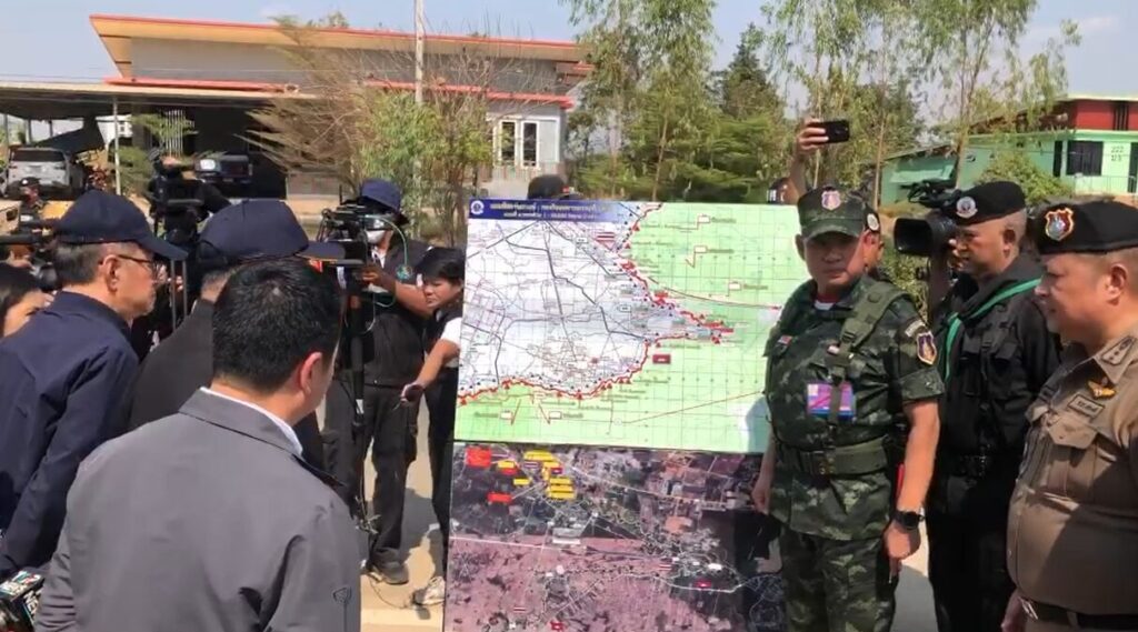เมื่อถามว่าจะขยายมาตรการเข้มข้นที่ทำกับเมียนมาร์มาใช้ในฝั่งกัมพูชาหรือไม่ นายภูมิธรรม กล่าวว่า บางอย่างเหมือนได้ บางอย่างไม่เหมือนกัน เช่น เรื่องของการตัดไฟต้องคุยกับเจ้าหน้าที่ทางเทคนิค แต่ไม่ใช่ปัญหาของทางกัมพูชา แต่สัญญาณอินเตอร์เน็ตมีส่วนสำคัญมากกว่า เพราะแนวชายแดนติดกัน บางครั้งสามารถกระโดดข้ามกันมาได้ ที่เสนอขอทำรั้วให้สูงขึ้นคิดว่าน่าจะเป็นประโยชน์และจะนำไปพิจารณา และไม่ต้องกลัวหากมีการทำรั้วจะไม่ใช่พื้นที่ทับซ้อน เราทำในอธิปไตยของเรา พื้นที่ทับซ้อนต้องไว้ทีหลังเพราะมีปัญหาอยู่ จึงย้ำมาตลอดว่าการจัดการปัญหาไม่ง่าย เพราะมีเรื่องความสัมพันธ์กับประเทศเพื่อนบ้าน
