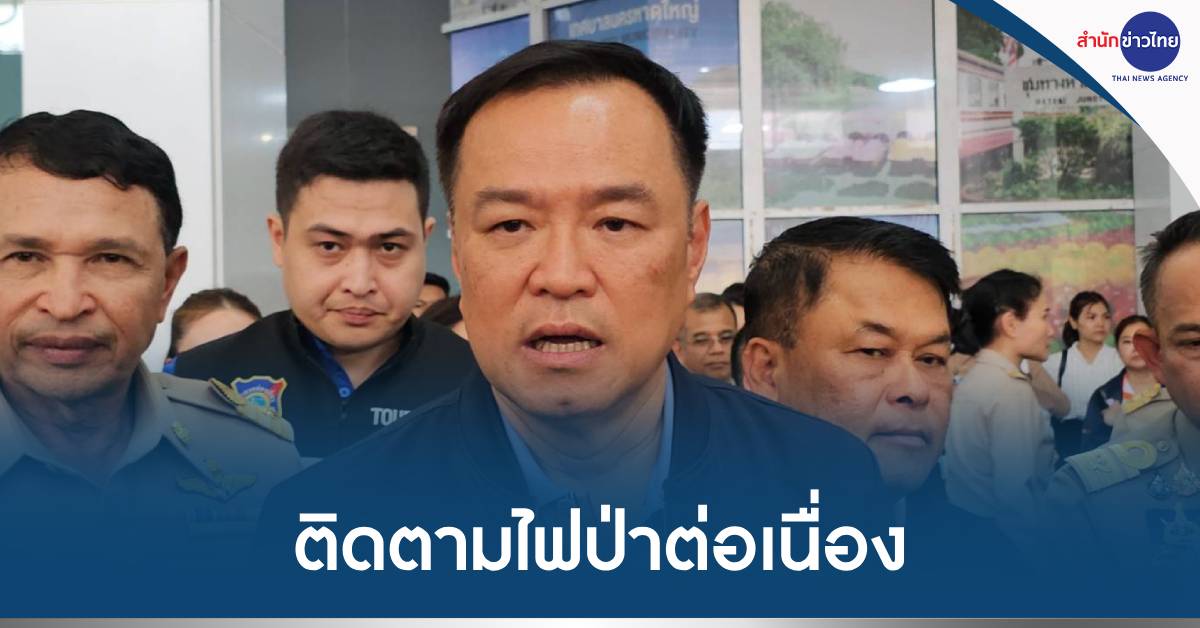 สงขลา 17 ก.พ.-“อนุทิน” ติดตามสถานการณ์ไฟป่าต่อเนื่อง ขอบคุณเกษตรกรและประชาชนให้ความร่วมมือลดการเผาซากวัชพืช ย้ำปีนี้บังคับกฎหมายอย่างเข้มข้น พร้อมหาแนวทางช่วยเหลือเกษตรกร เร่งเสนอให้นายกฯ พิจารณา พร้อมเผยยังไม่ได้รับรายงานทหารยิงปืนใหญ่จนเกิดไฟป่า เชื่อผู้ว่าฯ-ฝ่ายทหาร หารือกันแล้ว