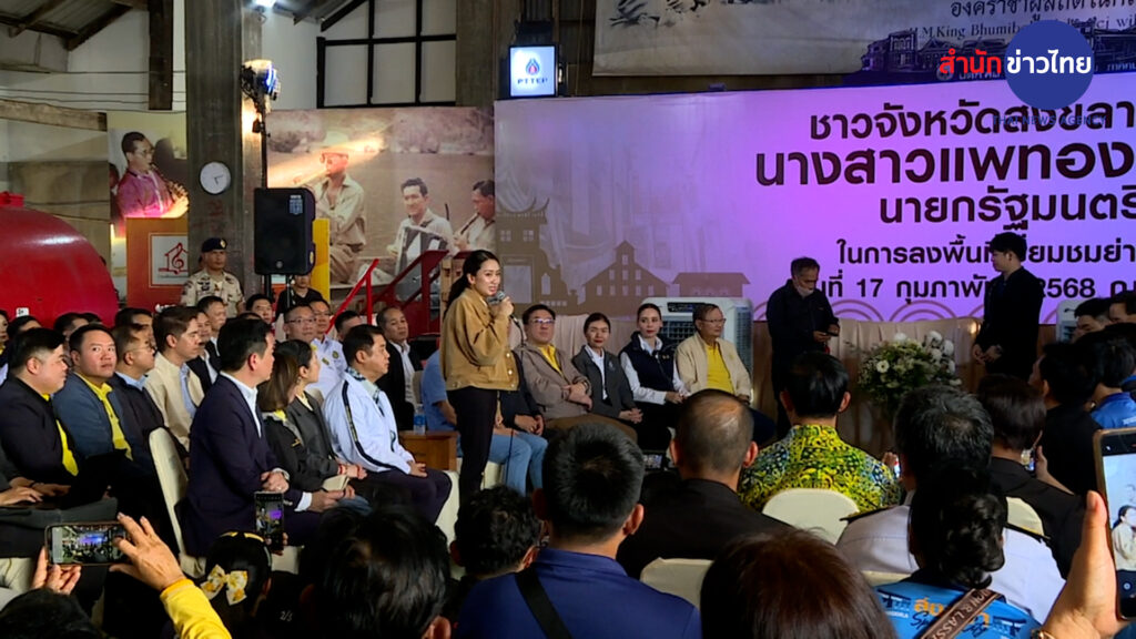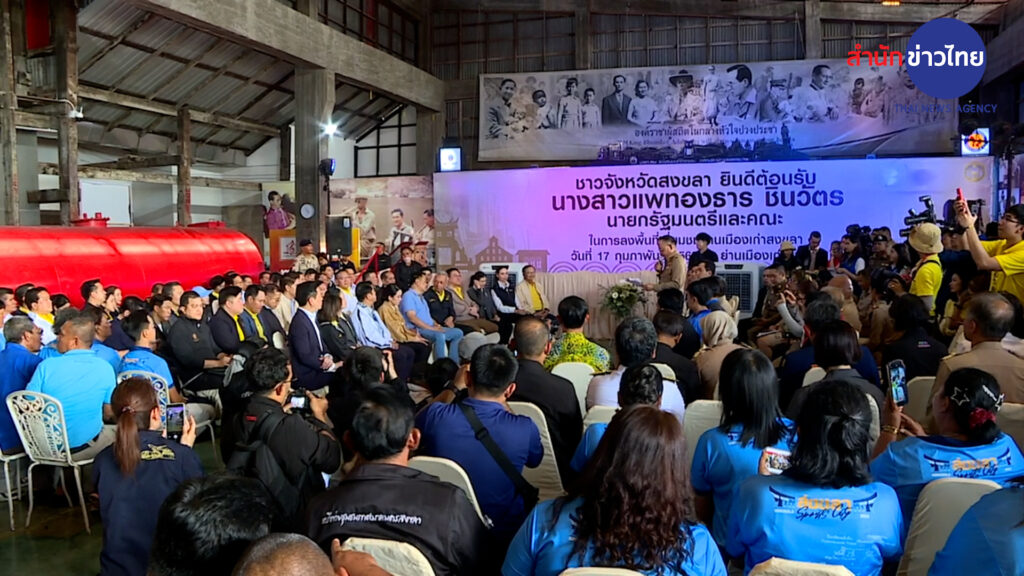 น.ส.แพทองธาร ชินวัตร นายกรัฐมนตรี พร้อมด้วยนายสุริยะ จึงรุ่งเรืองกิจ รองนายกรัฐมนตรีและรัฐมนตรีว่าการกระทรวงคมนาคม นายอนุทิน ชาญวีรกุล รองนายกรัฐมนตรีและรัฐมนตรีว่าการกระทรวงมหาดไทย นายพิพัฒน์ รัชกิจประการ รัฐมนตรีว่าการกระทรวงแรงงาน นางสาวจิราพร สินธุไพร รัฐมนตรีประจำสำนักนายกรัฐมนตรี นางมนพร เจริญศรี รัฐมนตรีช่วยว่าการกระทรวงคมนาคม นางสาวสุดาวรรณ หวังศุภกิจโกศล รัฐมนตรีว่าการกระทรวงวัฒนธรรม นายจุลพันธ์ อมรวิวัฒน์ รัฐมนตรีช่วยว่าการกระทรวงการคลัง นางสาวซาบีดา ไทยเศรษฐ์ รัฐมนตรีช่วยว่าการกระทรวงมหาดไทย และคณะ เดินทางมาเยี่ยมชมชุมชนเมืองเก่าสงขลา และล้อมวงพูดคุยประเด็นการส่งเสริมสถานที่ท่องเที่ยวแห่งใหม่ของจังหวัดสงขลา ที่ย่านเมืองเก่าสงขลา ตำบลบ่อยาง อำเภอเมืองสงขลา จังหวัดสงขลา