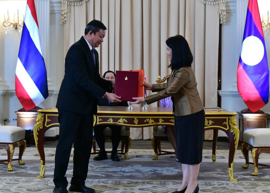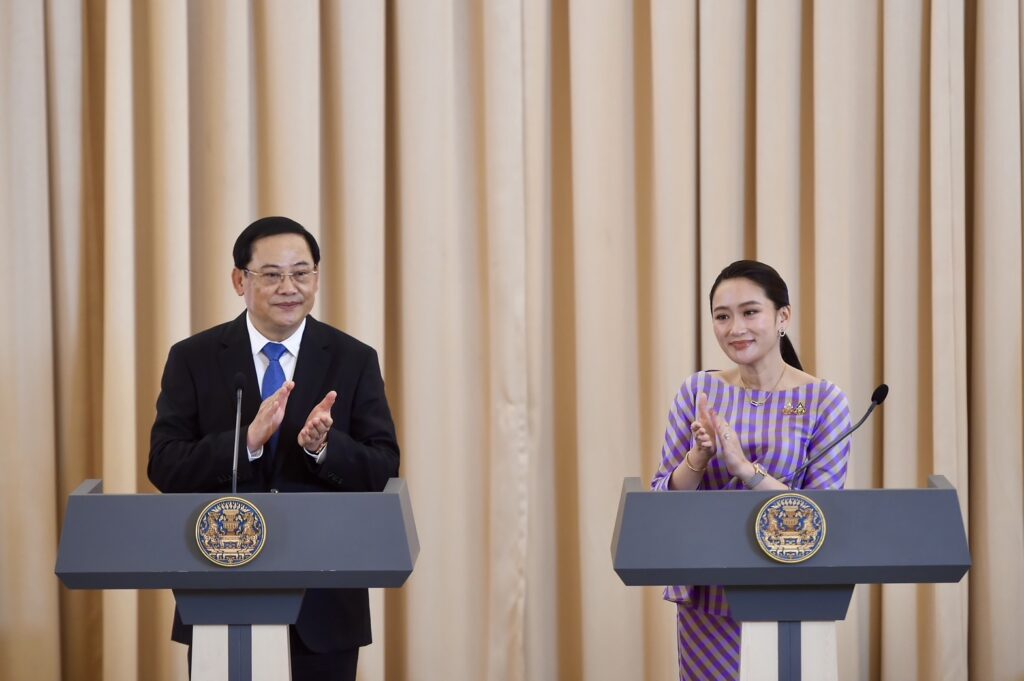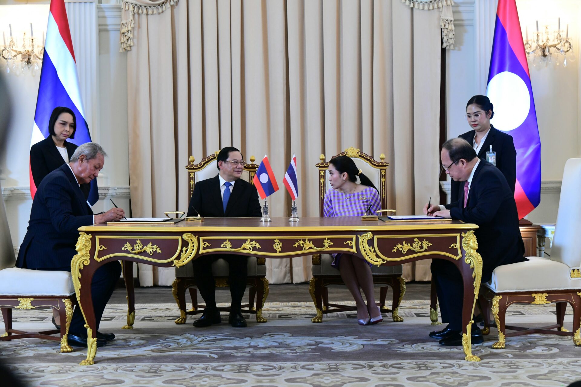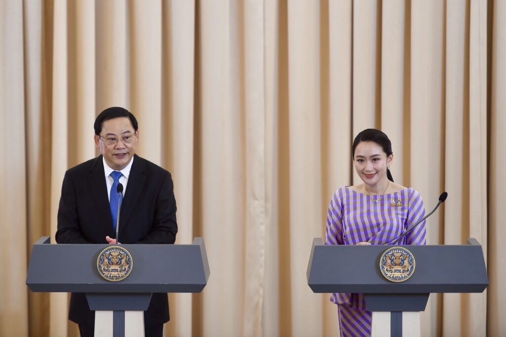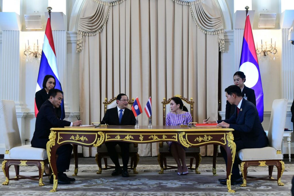 น.ส.แพทองธาร ชินวัตร นายกรัฐมนตรี และนายสอนไซ สีพันดอน นายกรัฐมนตรีสาธารณรัฐประชาธิปไตยประชาชนลาว ร่วมแถลงภายหลังพิธีลงนามความตกลงและแลกเปลี่ยนบันทึกความเข้าใจ พร้อมเปิดตัวตราสัญลักษณ์เฉลิมฉลองการสถาปนาความสัมพันธ์ทางการทูตไทย – สปป.ลาว ครบ 75 ปี