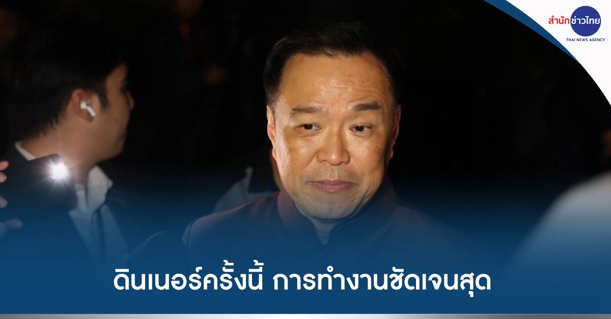 กทม. 25 ก.พ.-“อนุทิน” โวดินเนอร์ครั้งนี้ การทํางานชัดเจนสุดตั้งแต่ร่วมรัฐบาล เผยศึกซักฟอก ภูมิใจไทยไม่แตกแถว แม้เคยถูกบางพรรคแทงหลัง ยํ้าเอาเรื่องส่วนรวม