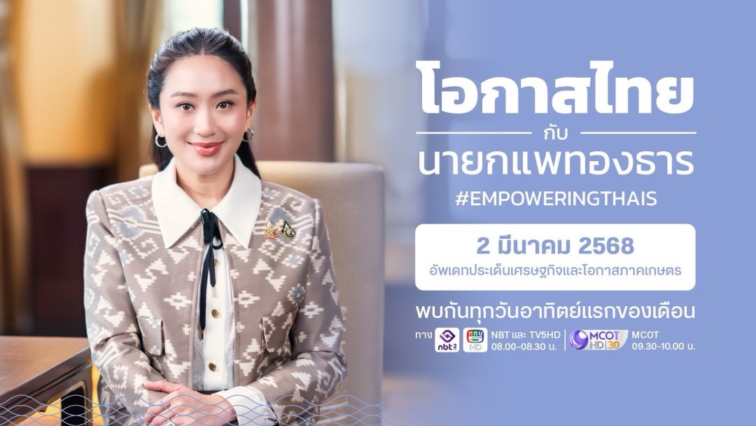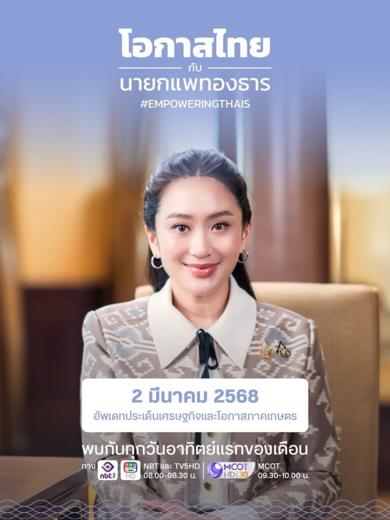ทำเนียบ 26 ก.พ.- นายกฯ อัปเดตประเด็นเศรษฐกิจและอนาคตภาคเกษตร สองนโยบายเครื่องมือสำคัญในการยกระดับเศรษฐกิจไทยในรายการ “โอกาสไทยกับนายกฯ แพทองธาร” วันอาทิตย์ที่ 2 มีนาคมนี้ ต้องติดตาม