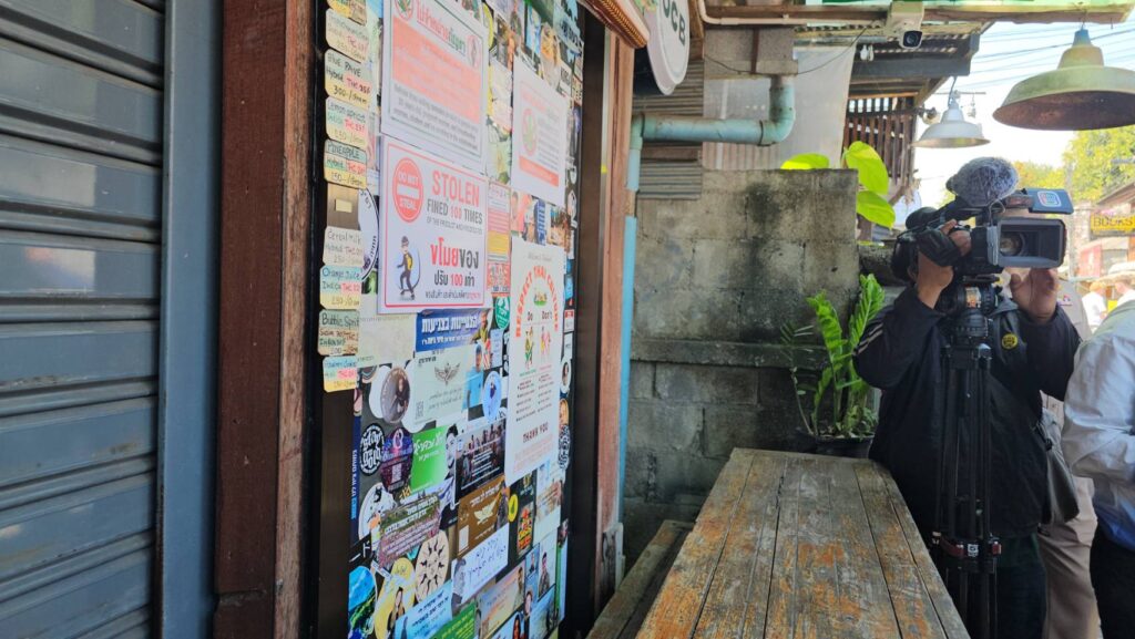 ผู้สื่อข่าวรายงานว่าตลอดเส้นทางที่นายอนุทิน ตรวจพื้นที่ พบว่ามีการปิดสติกเกอร์ไว้อาลัยผู้เสียชีวิตชาวอิสราเอลตลอดเสาและบริเวณด้านหน้าร้านค้า โดยนายอนุทิน ได้สั่งการให้ นายกเทศมนตรีเมืองปาย ให้เจ้าหน้าที่มานำสติกเกอร์ออกทั้งหมด พร้อมทำความเข้าใจกับประชาชน ถึงการแปะสติกเกอร์ในพื้นที่สาธารณะ โดยนายอนุทิน กล่าวว่าตนไม่อยากนำสติกเกอร์ออกผ่านสื่อมวลชน เนื่องจากอาจเป็นการทำร้ายจิตใจนักท่องเที่ยว และขอให้ไปปิดสติกเกอร์ยังชาบัดแทน