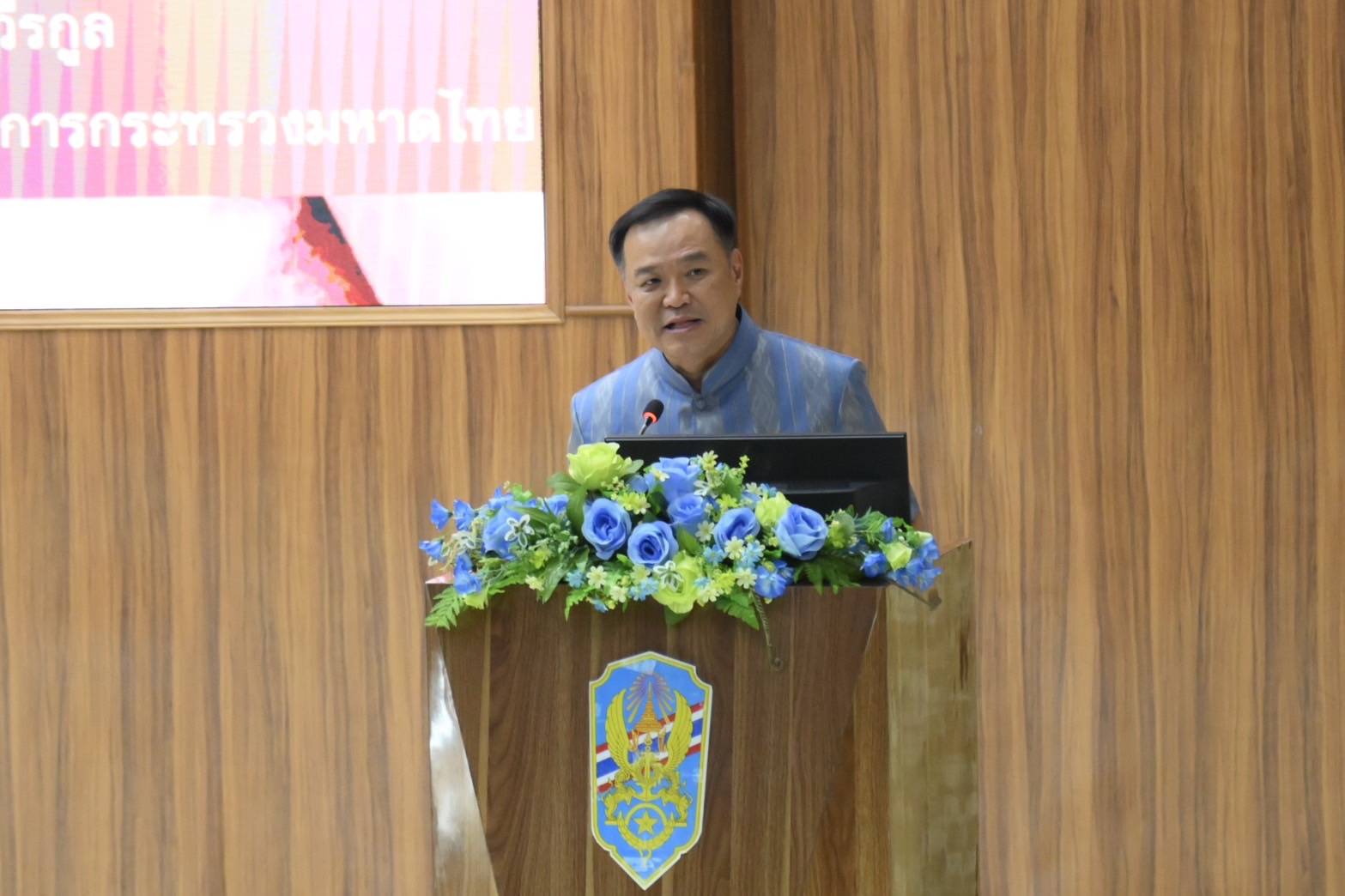นายอนุทิน ชาญวีรกูล รองนายกรัฐมนตรี และรัฐมนตรีว่าการกระทรวงมหาดไทย บรรยายเรื่องการสร้างผู้นำในการเผชิญกับสภาพสังคมโลก และภูมิภาคในสภาวการณ์ปัจจุบัน และอนาคต ให้กับนักเรียนหลักสูตรการบริหารความมั่นคงของสำหรับผู้บริหารระดับสูง รุ่นที่ 61 ณ หอประชุม วิทยาลัยป้องกันราชอาณาจักร (วปอ.) ถนนวิภาวดี กทม.