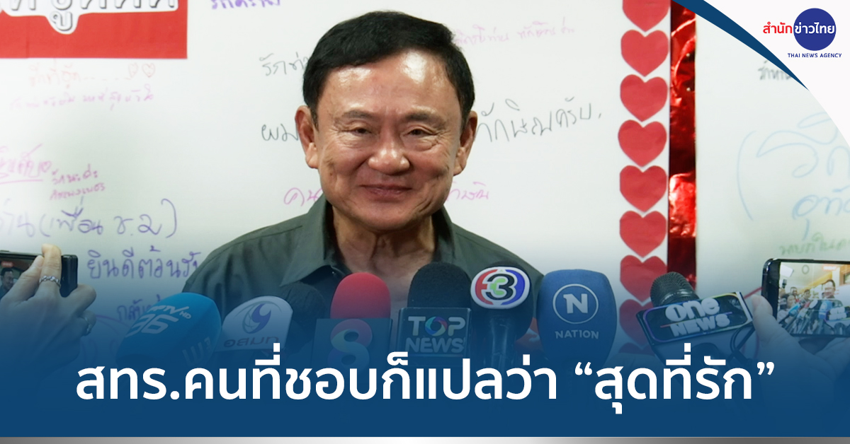 ส่วนกรณีที่ประธานรัฐสภาอนุญาตให้ฝ่ายค้านใช้คำว่า สทร. แทนชื่อของนายทักษิณได้ นายทักษิณ กล่าวว่า ไม่เป็นไร ในความรู้สึกของคนไม่ชอบผม เขาก็เอาคำพูดที่ผมพูดไว้ ว่า สทร. เสือกทุกเรื่อง แต่คนที่เขาชอบผม เขาก็แปลว่า “สุดที่รัก” สทร. สุดที่รัก ก็โอเค มีทั้ง 2 ทาง ไม่มีปัญหา -313 .-สำนักข่าวไทย