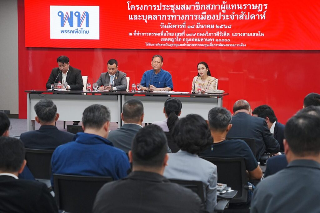 น.ส.แพทองธาร ชินวัตร นายกรัฐมนตรี เดินทางเข้าพรรคเพื่อไทยเพื่อร่วม สส. ประจำสัปดาห์ โดยก่อนที่นายกรัฐมนตรีจะเดินทางมาถึง นายวิสุทธิ์ ไชยณรุณ ประธานสส.พรรคเพื่อไทย ได้ทำหน้าที่เป็นประธานการประชุม โดยได้เน้นย้ำกับ สส. ว่า ในวันที่ 24 -26 มี.ค. ซึ่งจะเป็นช่วงเวลาของการอภิปรายไม่ไว้วางใจรัฐบาลของฝ่ายค้าน ดังนั้น สส.ห้ามไปไหนเป็นอันขาด เพราะจะมีการอภิปรายไม่ไว้วางใจของฝ่ายค้านซึ่งมีการบรรจุระเบียบวาระแล้ว โดยจะเริ่มในวันที่ 24 มี.ค.ขอให้พวกเราทุกคนไปถึงสภาฯ ก่อนเวลา 08.00 น. เพื่อลงชื่อเข้าประชุมให้เรียบร้อยพร้อมทำหน้าที่ เพราะที่ผ่านมาต้องเรียนว่าพรรคเพื่อไทยองค์ประชุมครบเป็นปึกแผ่น ดังนั้นในวันที่ 24-26 มี.ค. ขอความเป็นปึกแผ่นจากทุกคนโดยอยู่ทำหน้าที่ตลอดเวลา ถ้าต้องนอนดึกหน่อยก็ไม่เป็นไร นานๆ ครั้ง ดังนั้นขอกำลังใจจากพวกเราในการอภิปรายครั้งนี้ซึ่งฝ่ายค้านจะอภิปรายนายกฯ ทราบว่า 95% จะอภิปรายนายกฯ คนเดียว