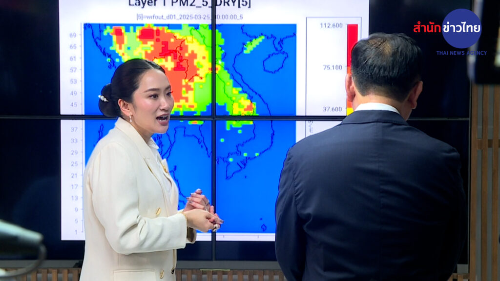 นางสาวแพทองธาร ชินวัตร นายกรัฐมนตรี เป็นประธานการติดตามการดำเนินงานรับมือและบริหารจัดการสถานการณ์ฝุ่นละออง PM 2.5 ที่ศูนย์สื่อสารการแก้ไขปัญหามลพิษทางอากาศ (ศกพ.)กระทรวงทรัพยากรธรรมชาติและสิ่งแวดล้อม มีนายเฉลิมชัย ศรีอ่อน รัฐมนตรีว่าการกระทรวงทรัพยากรธรรมชาติและสิ่งแวดล้อม นายจตุพร บุรุษพัฒน์ ปลัดกระทรวงฯ นายอรรถพล เจริญชันษา อธิบดี กรมอุทยานแห่งชาติสัตว์ป่าและพันธุ์พืช และผู้เกี่ยวข้อง ต้อนรับ โดยรับฟังสรุปภาพรวมสถานการณ์หมอกควันและฝุ่นละอองขนาดเล็กPM2.5 รวมถึงการเฝ้าระวังไฟป่า