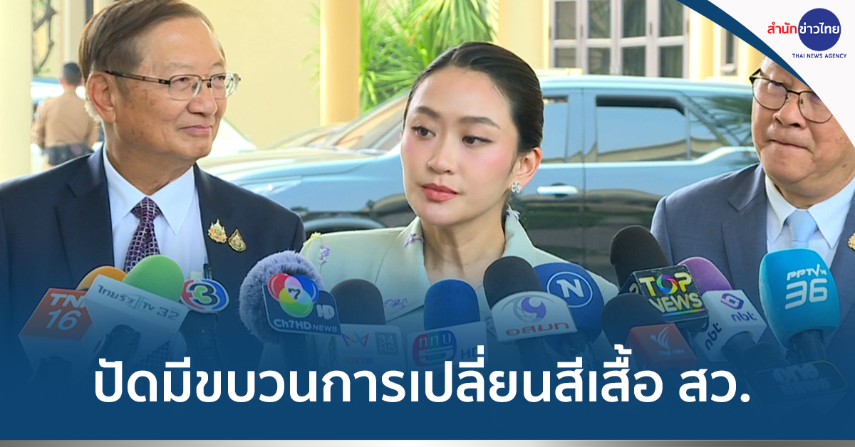 ส่วนกระแสข่าวที่บอกว่ามีกระบวนเปลี่ยนสีเสื้อ สว. จริงหรือไม่ นายกรัฐมนตรี ถามกลับทันทีว่า “เปลี่ยนจากสีอะไรเป็นสีอะไร” ผู้สื่อข่าวจึงตอบว่า “เปลี่ยนจากสีน้ำเงินเป็นสีแดง” นายกรัฐมนตรี จึงร้อง “อ่อ” ก่อนตอบว่า ไม่มีหรอกค่ะ .-316 -สำนักข่าวไทย