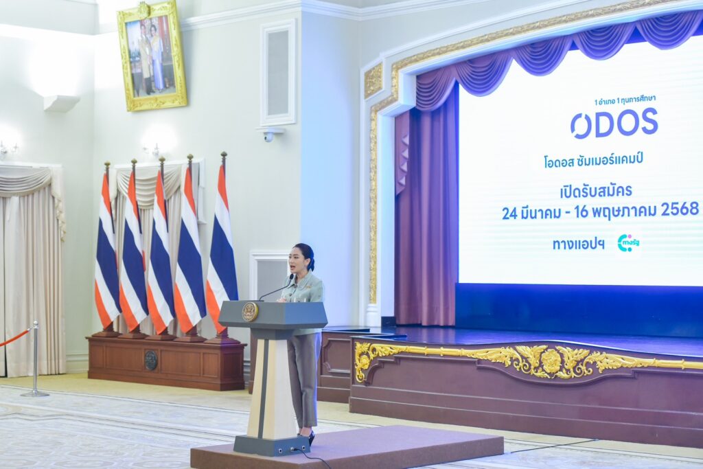 น.ส.แพทองธาร ชินวัตร นายกรัฐมนตรี เป็นประธานงานแถลงข่าวโครงการพัฒนาศักยภาพเยาวชน Outstanding Development Opportunity Scholarship (ODOS) 1 อำเภอ 1 ทุนการศึกษา เพื่อขยายโอกาส และพัฒนาประเทศ ณ ตึกสันติไมตรี ทำเนียบรัฐบาล
