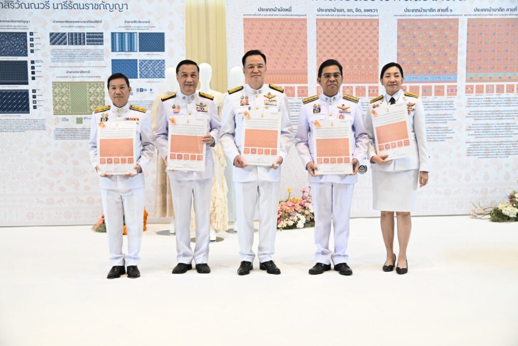 เมืองทอง 21 มี.ค.-“อนุทิน” เป็นประธานมอบลายผ้าพระราชทาน “ผ้าลายสิริราชพัสตราภรณ์” แก่ผู้ว่าราชการจังหวัด เพื่อเชิญไปมอบแก่ช่างทอผ้าและช่างหัตถกรรมไทยทั่วประเทศ