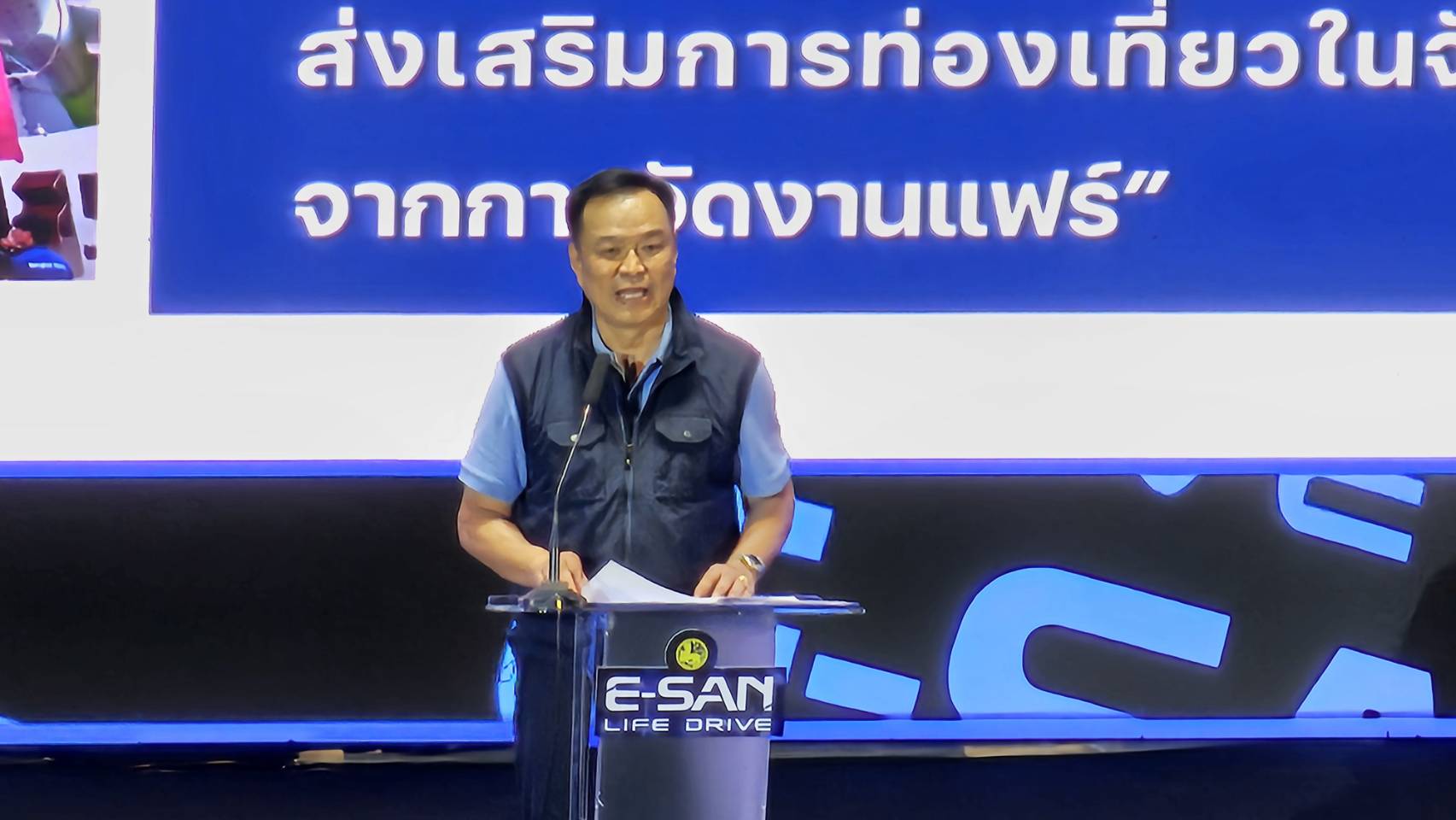 ศรีสะเกษ 22 มี.ค. – “อนุทิน” เปิดเวที E-SAN Life drive ขับเคลื่อนอีสานสู่อนาคต หวังดึงศักยภาพ ทำประชาชนก้าวอย่างมั่นคง ชม “อาคม” สมัยเป็น รมว.คลัง หนุนงาน “ศักดิ์สยาม” ขับเคลื่อนคมนาคมขนส่งเชื่อมอีสานใต้สมบูรณ์ ก่อนขอบคุณ สส. แม้ภารกิจแน่นก่อนรับศึกอภิปราย แต่ไม่ทิ้งประชาชน